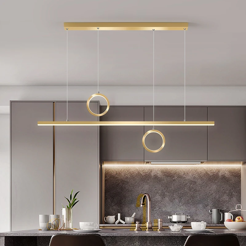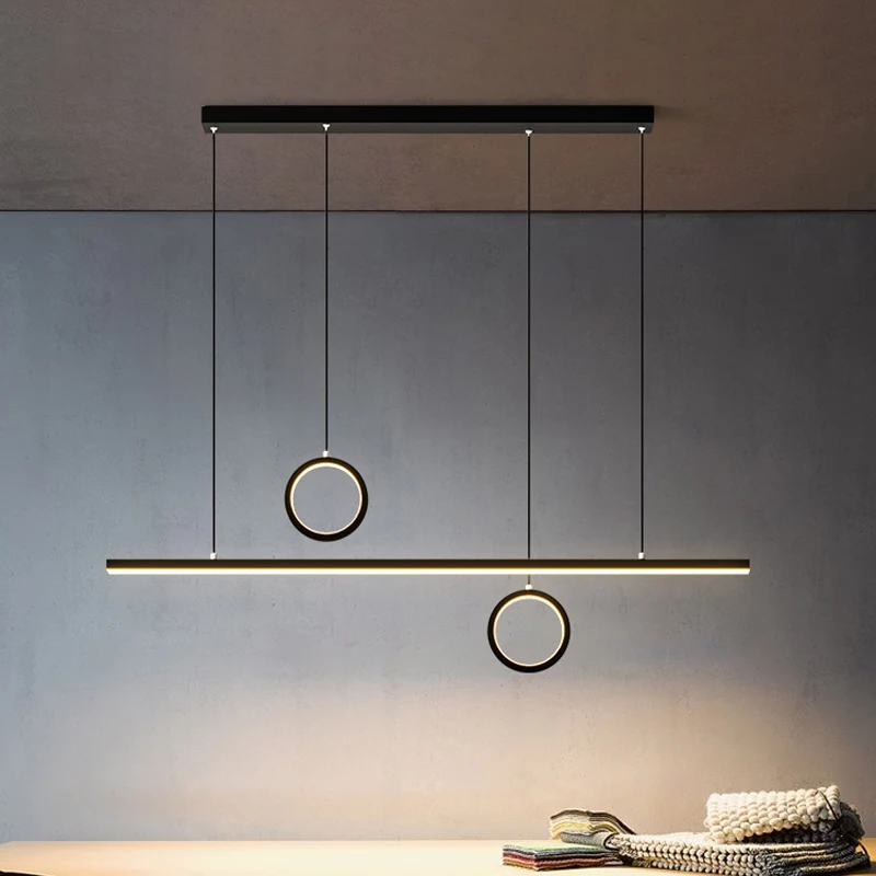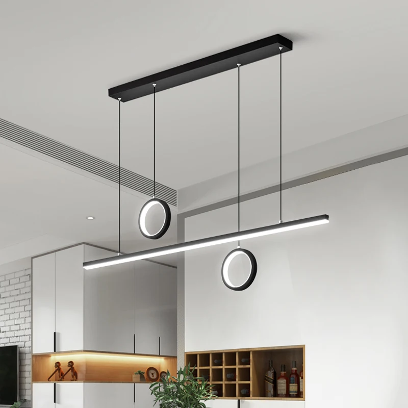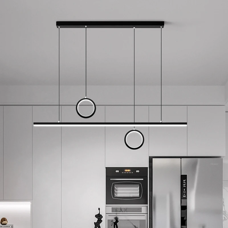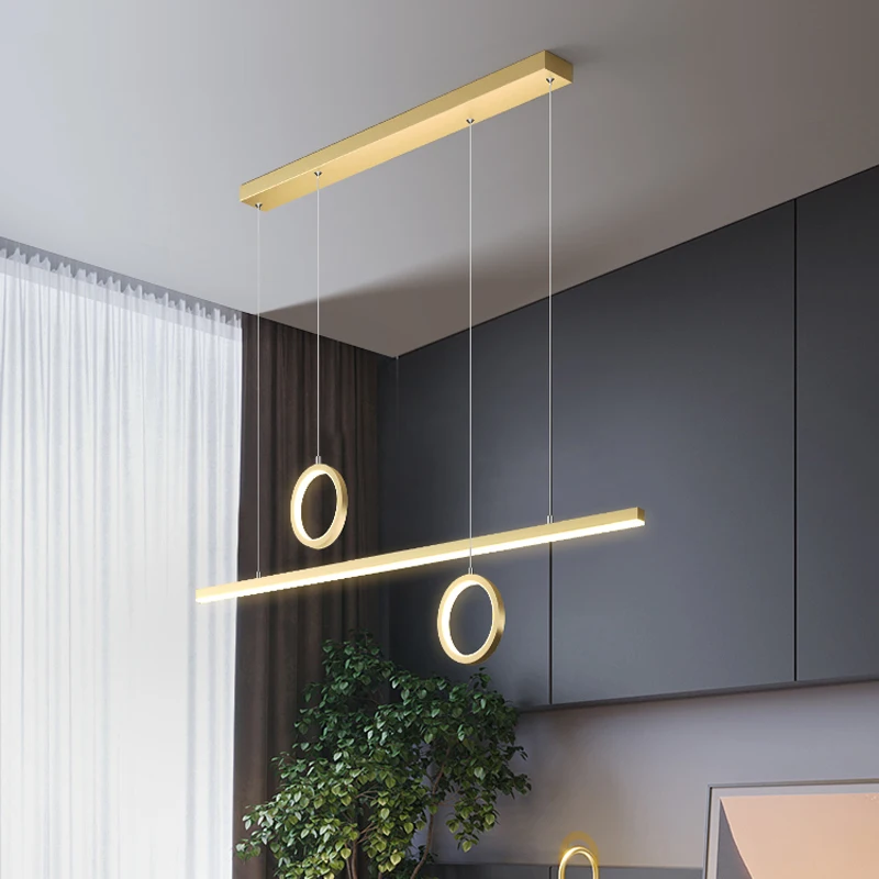 Modern Luxury Dining Room and Bar Chandelier Golden Black Linear Pendant Light with Remote Control for Restaurant and Cafe