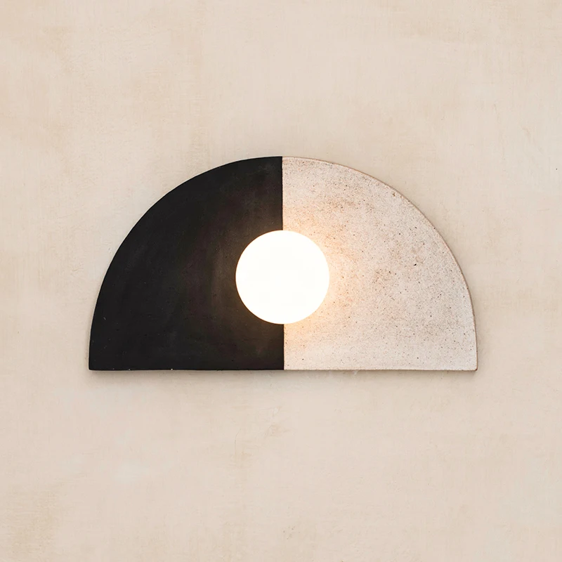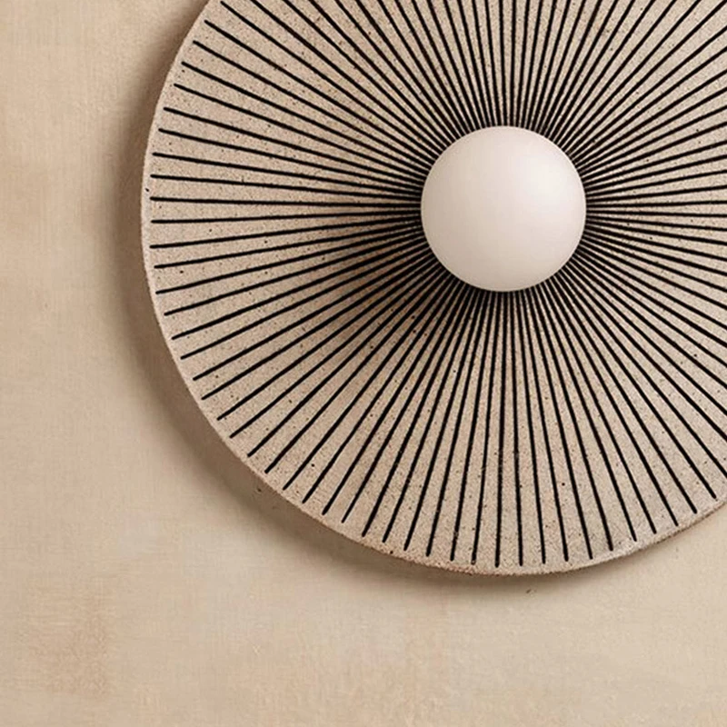 Japanese Zen B&B Tea Room Background Wall Medieval Round LED Lamp Resin Body for Bedroom Bedside or Living Room