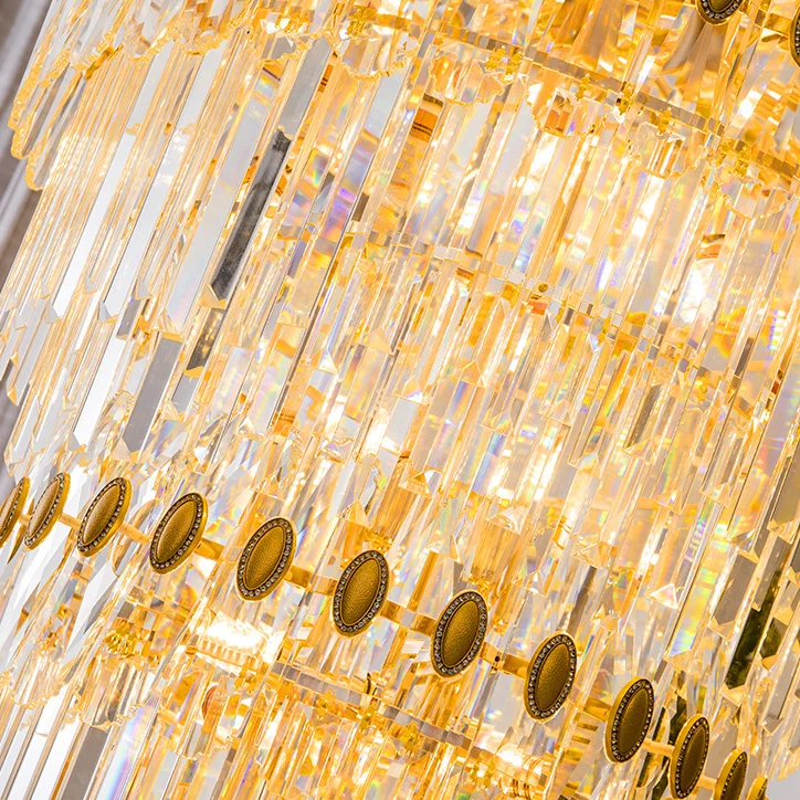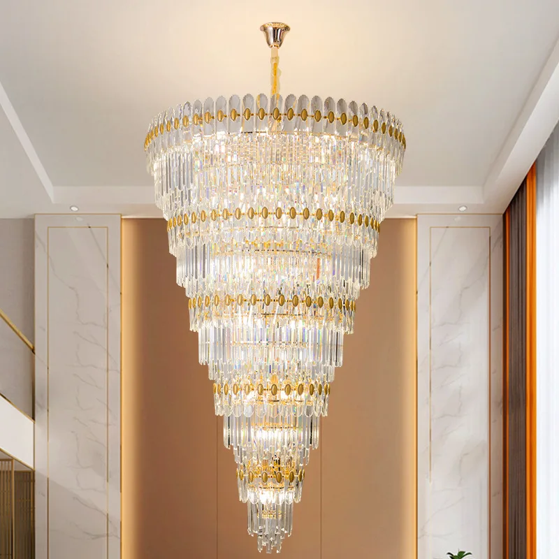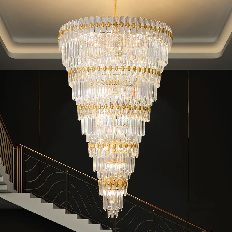 European Gold Crystal Pendant Light Villa Retest Building Living Room Large Long Customized Chandelier for Villa