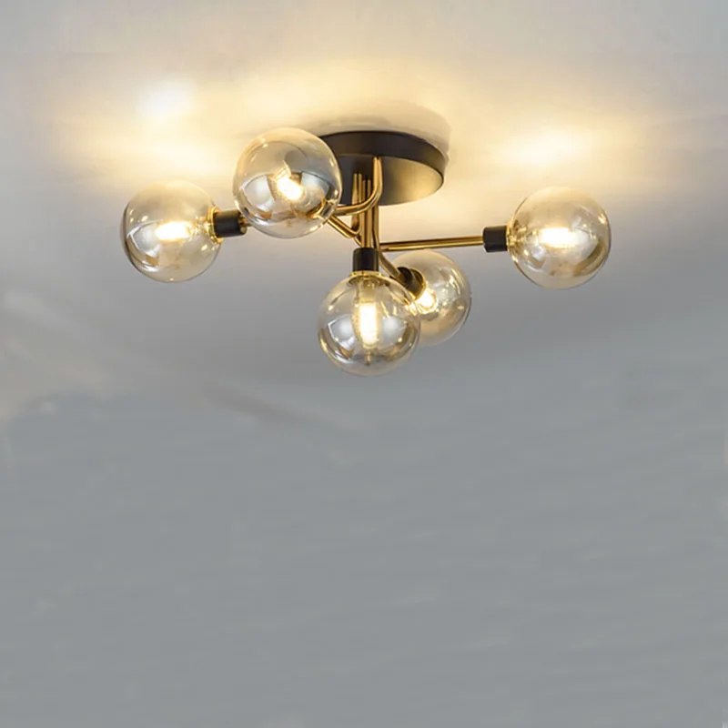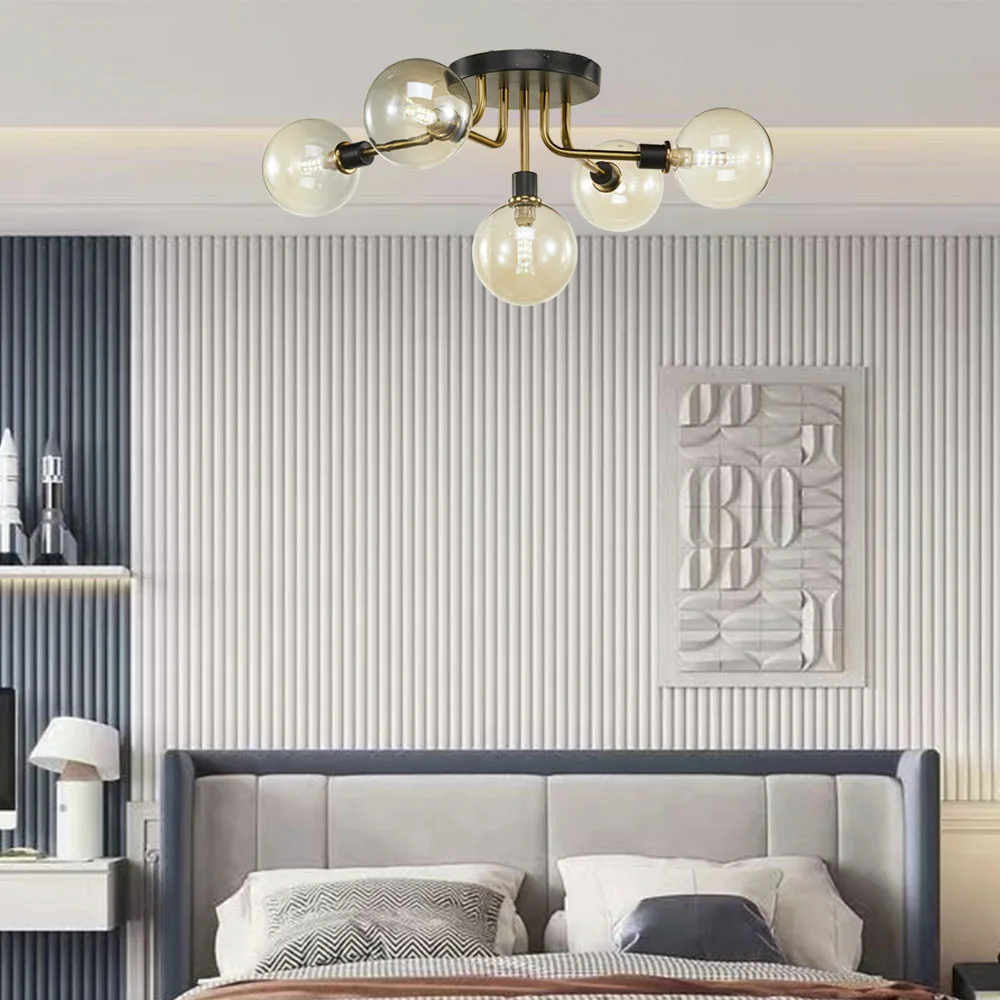 Flush Mount Nordic Glass Shade Decorative 5-light Sputnik Modern Linear Chandelier Ceiling Lights