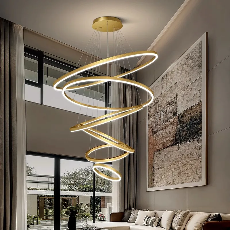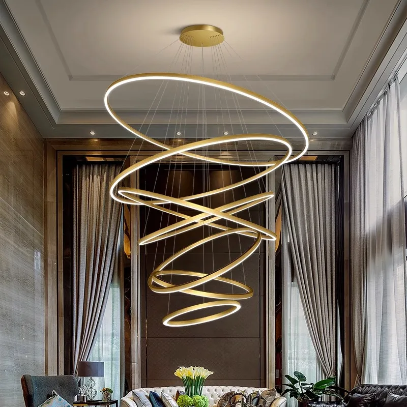 Modern Chandelier Large Led Pendant Light Fixture Luxury Acrylic Adjustable Circle High Ceiling Ring Lamp for Hotel Dining Room