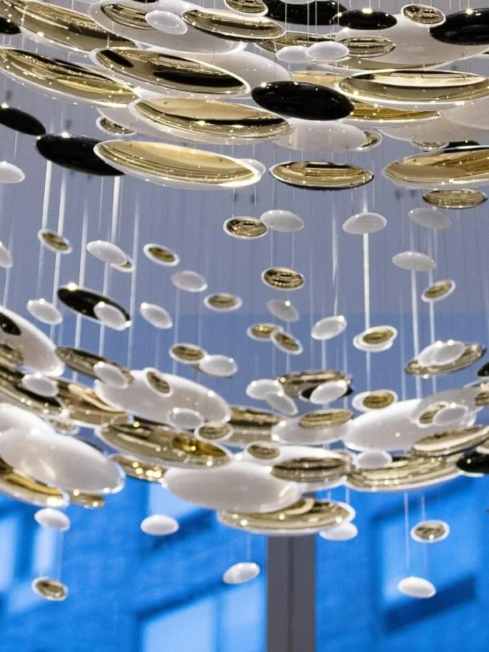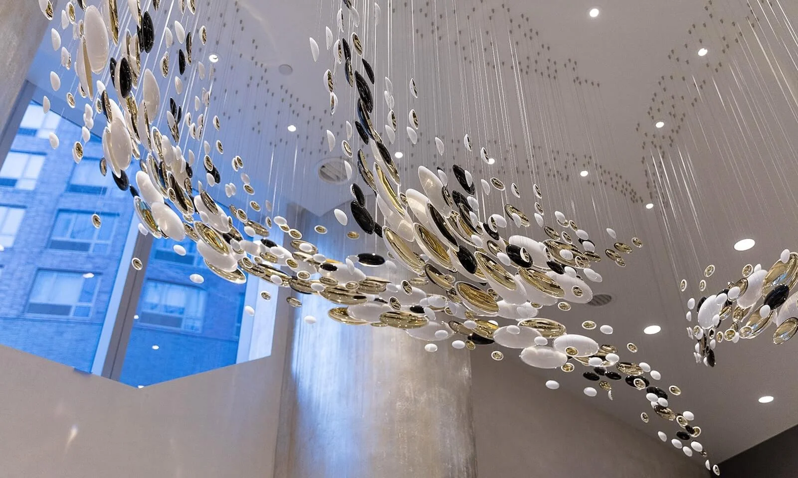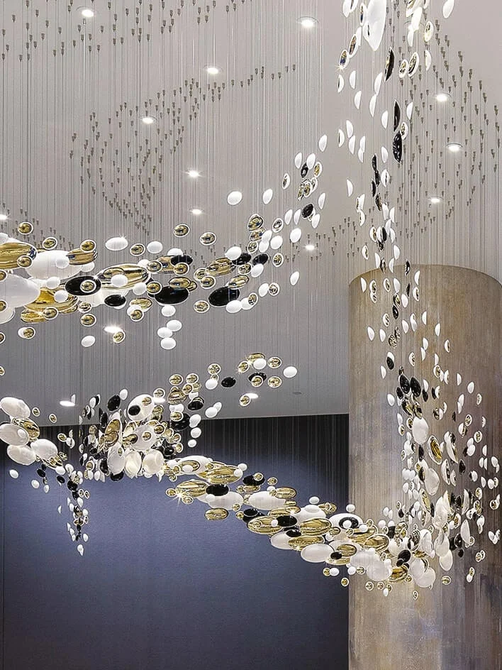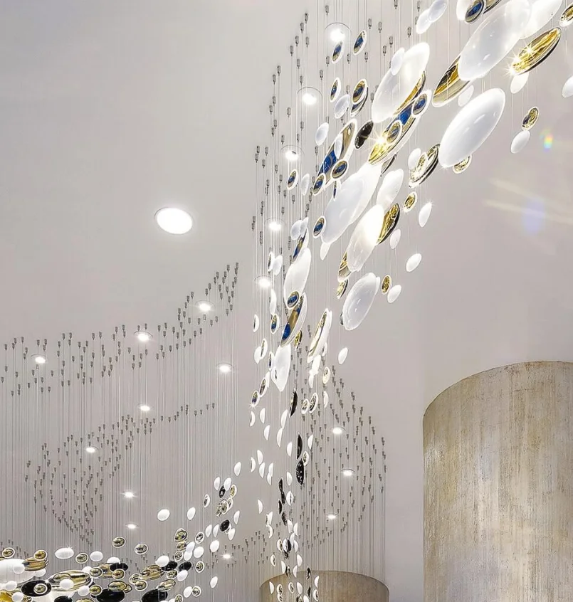 ECOJAS Hand Blown Glass Pendant Lamps Feather Leaf Design Hanging Lamps Hotel Lobby Art Decor Murano Glass Art Chandelier Light