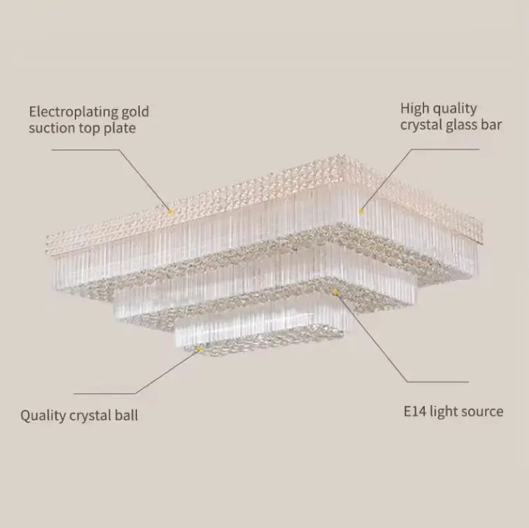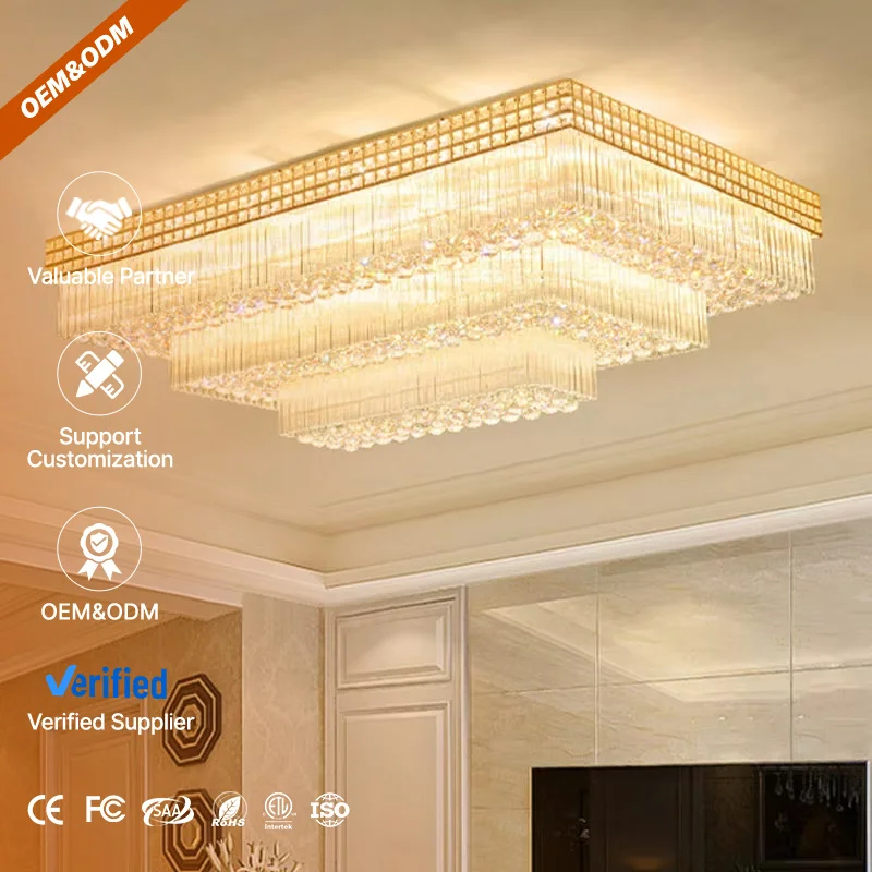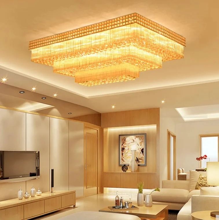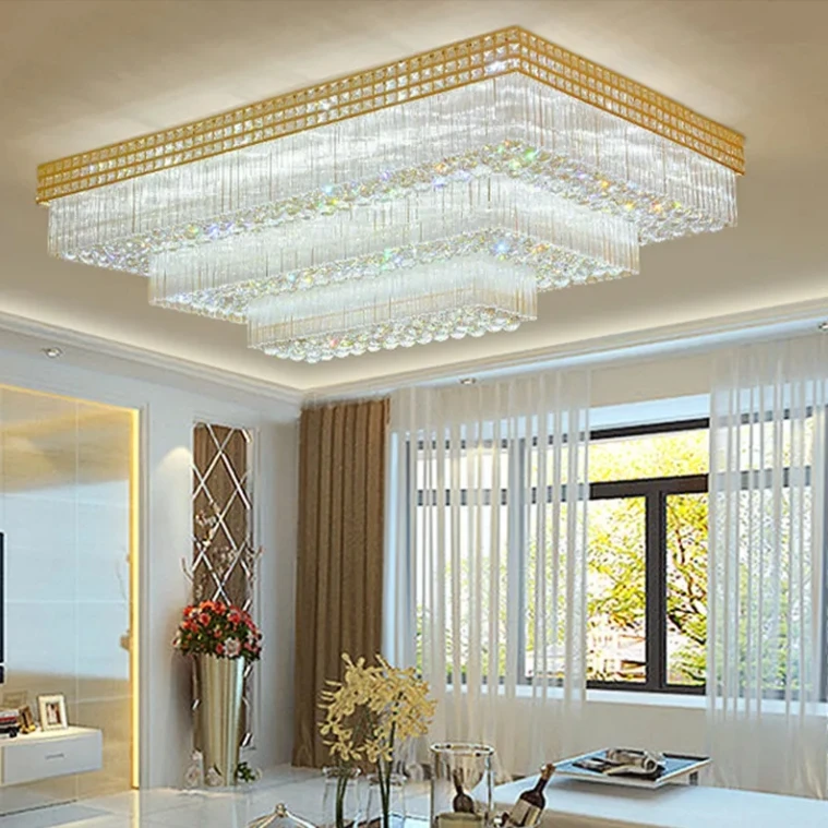 Restaurant Hotel Living Room Large Rectangular Led Luxury Crystal Ceiling Lamp Lusters Chandelier Light