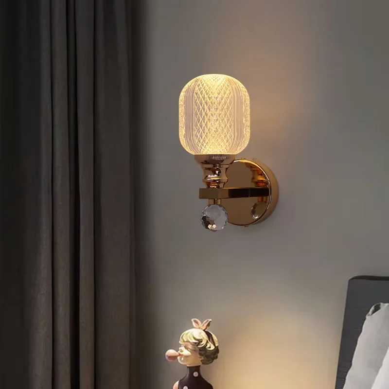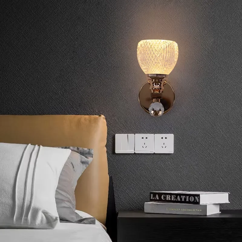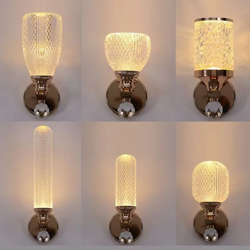 Hot Selling LED Modern Gold Transparent Hardware Acrylic Wall Lamp for Living Room Bedroom