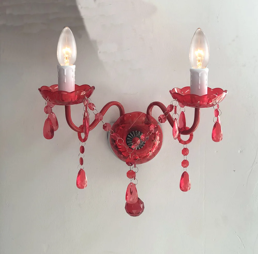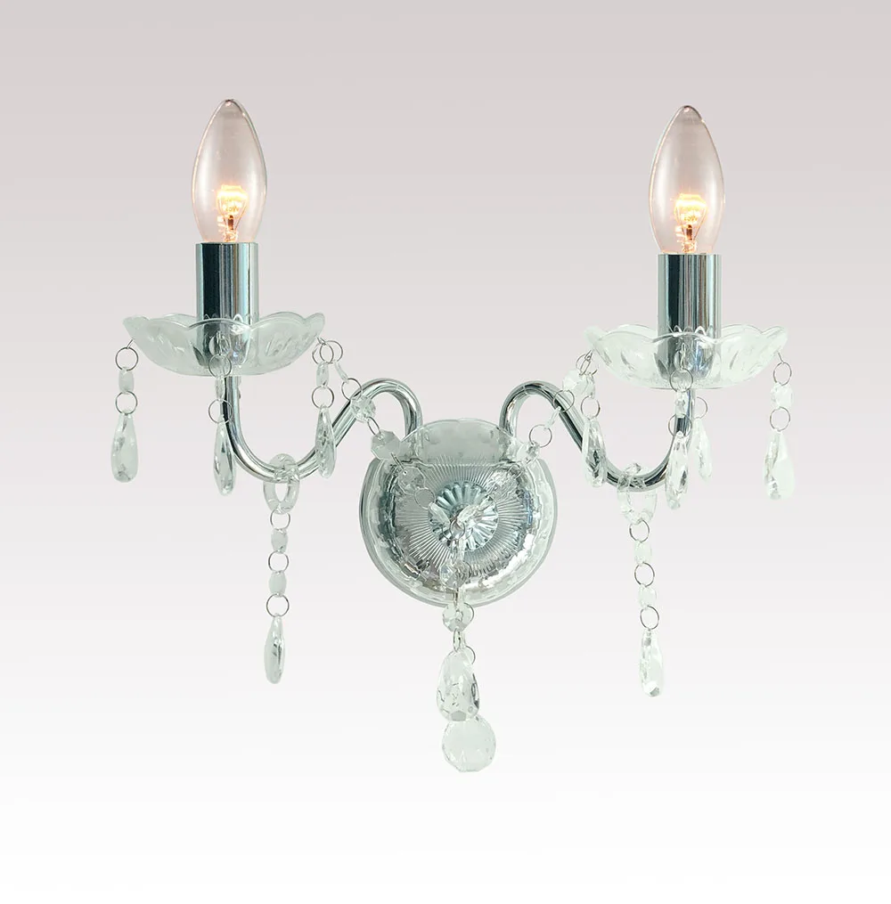 2 Light Polished Chrome Frame Wall Light Fixtures Indoor Mount Clear Crystal Droplets Wall Chandelier Lamp