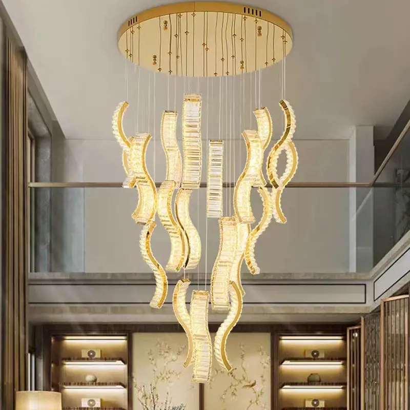 Zeal Lighting Adjustable Staircase Chandeliers Hanging Villa Room Stair Crystal Line Pendant Light