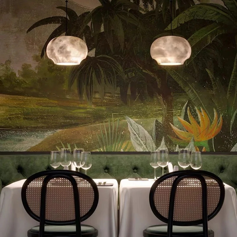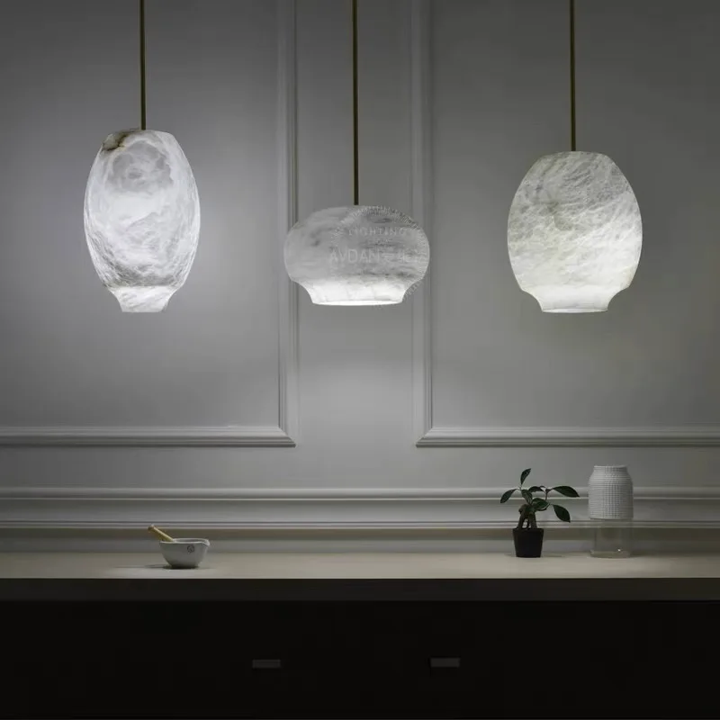 Natural Snowflake Marble Chandelier Modern Restaurant Bar Lighting Designer High-end Copper LED Adjustable Height Dimmable