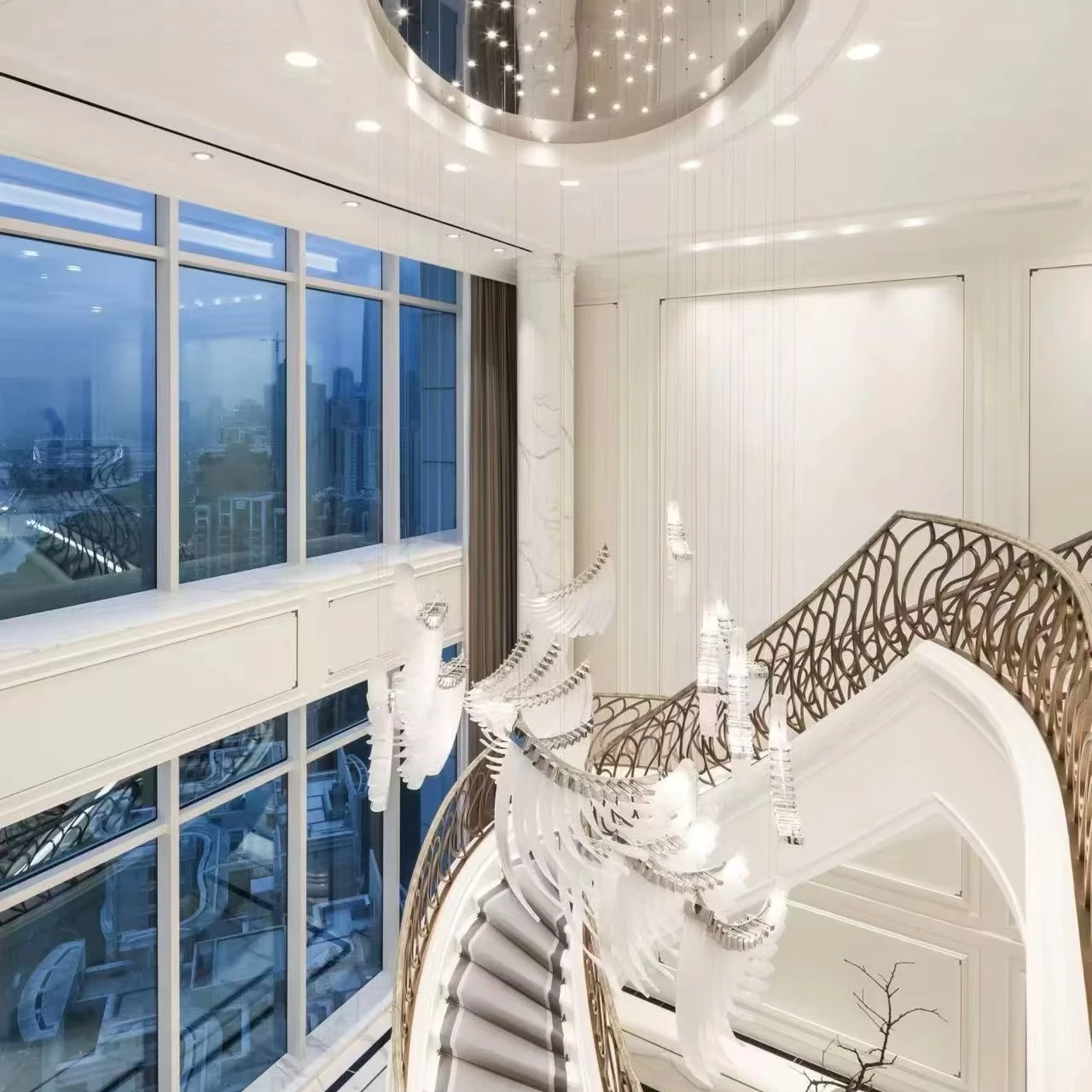 Zeal Lighting Long Stairwell Hanging Pendant Light Staircase Villa Duplex Stair High Ceiling Crystal Chandelier