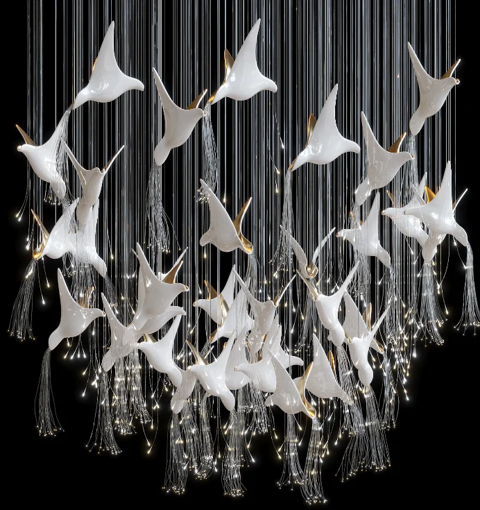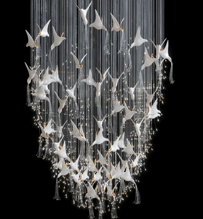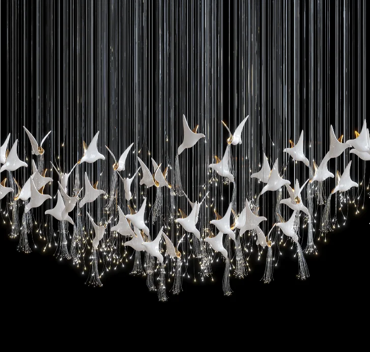Nordic Designer Villa Hotel Lobby Dining Room Decor Swallow Ceramics Pendant Bird Hanging Ceiling Light Modern Led Chandelier