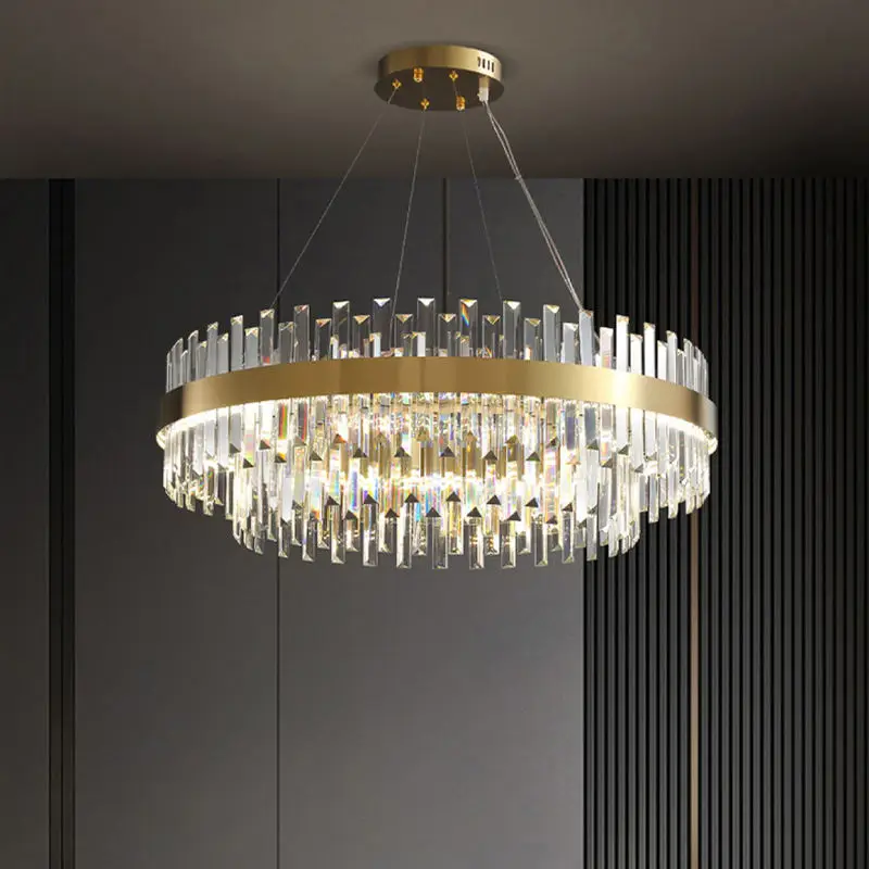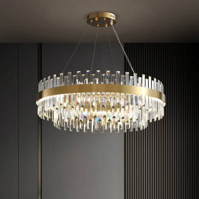 European Decoration Light Living Room Gold Rectangle Round Crystal clear Glass Pendant Light