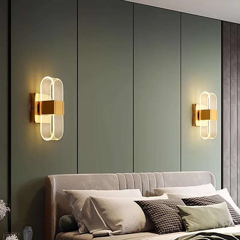 Interior Modern Minimalist Creative Wall Lamp for Bedroom Living Room Wall Lights Black Gold Acrylic LED Wall Bracket Light