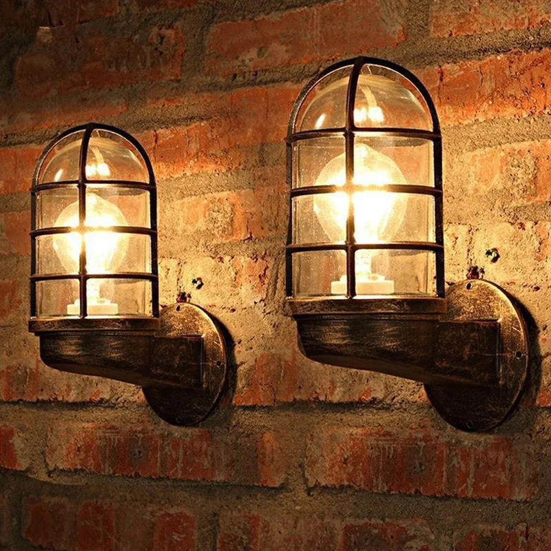 American Countryside Retro Industrial Style Wall Lamp Farmhouse Creative Aisle Light Fixture with Iron Glass for Coffee Shop Bar