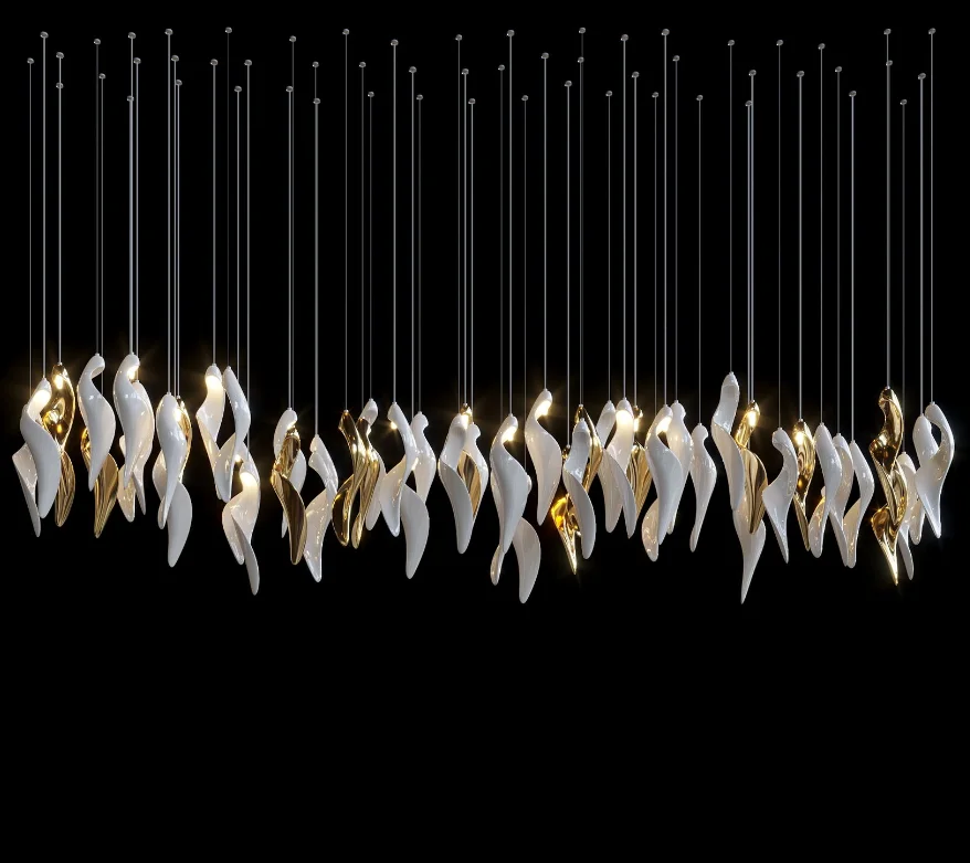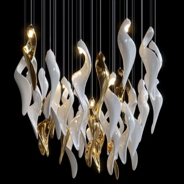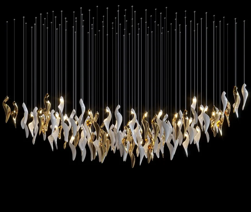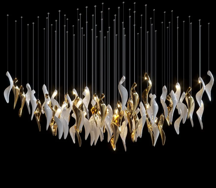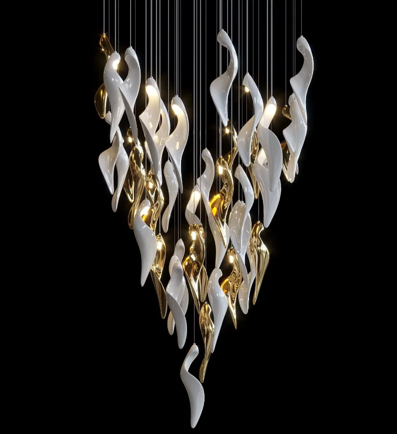 Bespoke Design Lighting Luxurious Gold Decoration Custom Commercial Staircase Hotel Lobby Led Modern Chandelier Lamp