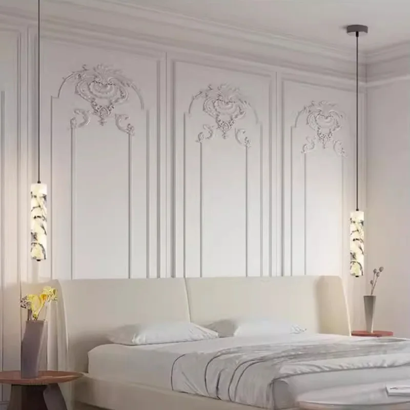 Cheap Competitive Price Simple Marble Modern Bedroom Bedside Long Strip Pendants Alabaster Chandelier