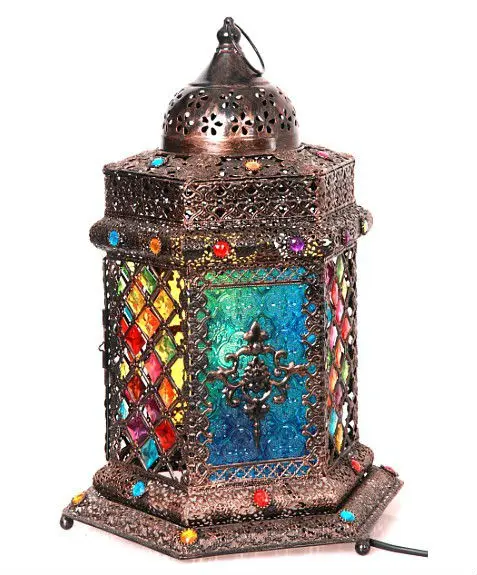 Moroccan Style Antique Red Carving Flower Lampshade Floor Lamp