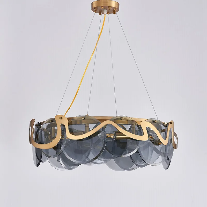 Postmodern Chandelier Nordic Creative Circle Ring Grey White Glass Pendant Light for Dining Room