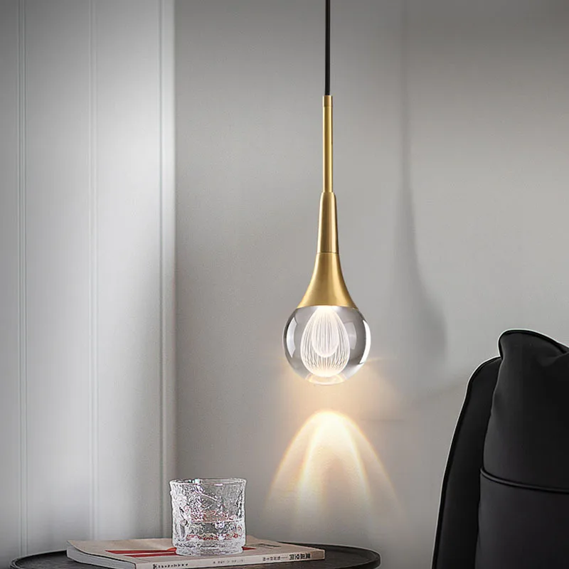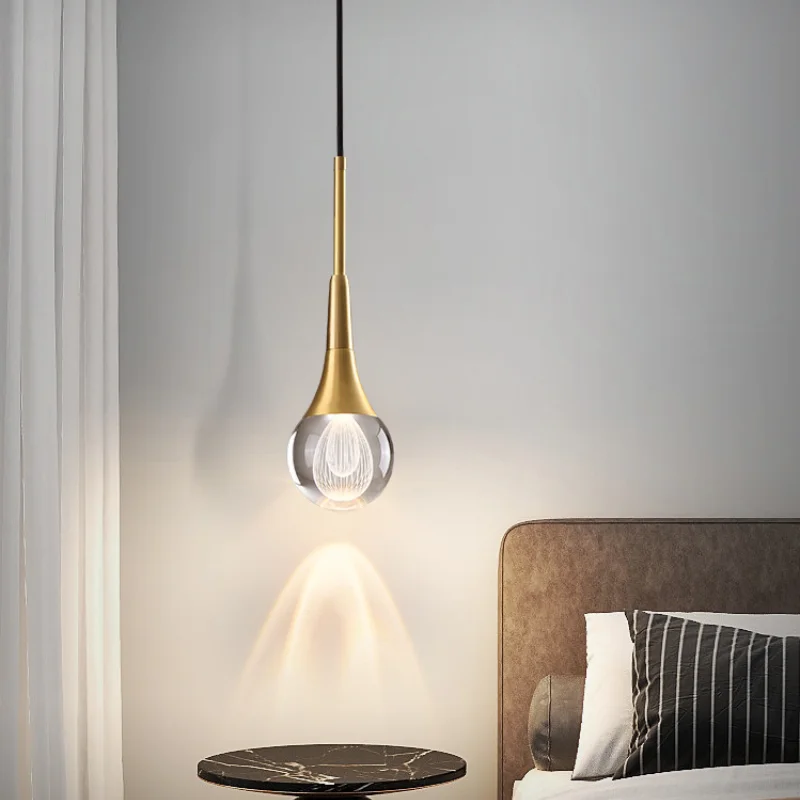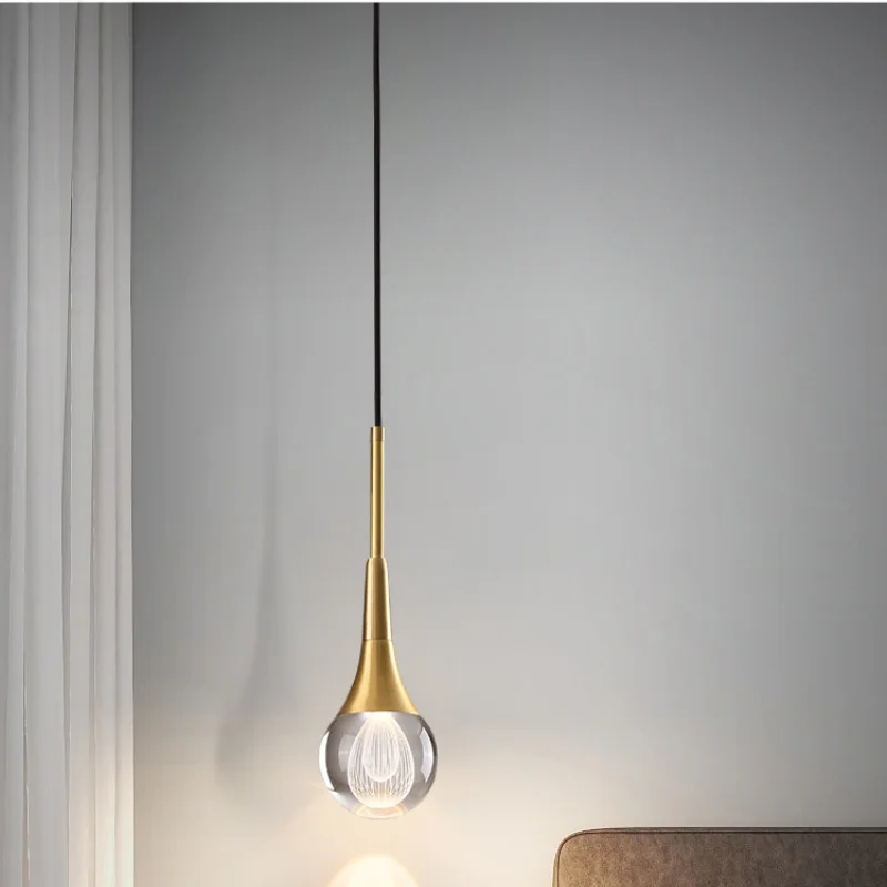 Light Luxury Postmodern Living Room Bedside Nordic Simple Single Head Crystal Copper LED Chandelier Middle Size 3-Year Warranty