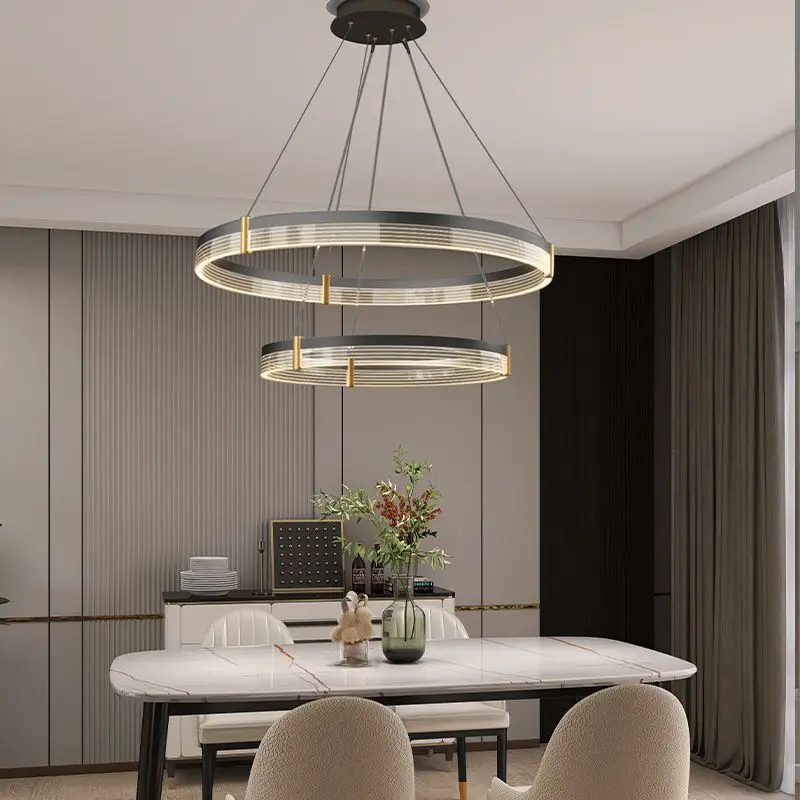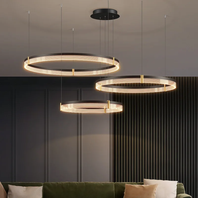 Zeal Lighting Modern Simple Hanging Pendant Light 3 Rings Black Acrylic Chandelier Dining Room