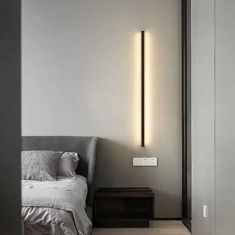 Decoration Led Wall Light Indoor Bedroom Bedside Aisle Black Long Strip Wall Light Fixtures