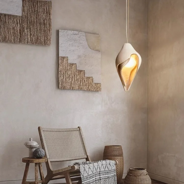 Wabi Sabi Style LED Bedroom Villa Office Kitchen Hotel Hanging Hollow Corner Pendant Chandelier Ceiling Light Lamp Modern E27