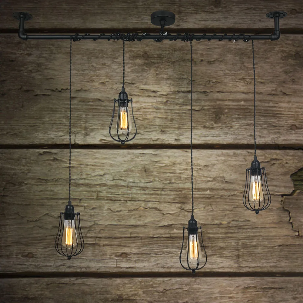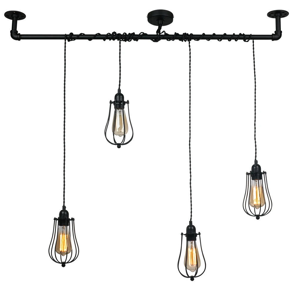 Industrial Pendant Lamp Steampunk Water Pipe Hanging Lamp NS-125331 Vintage Lighting and Circuitry Design Iron Matt Black 1-year
