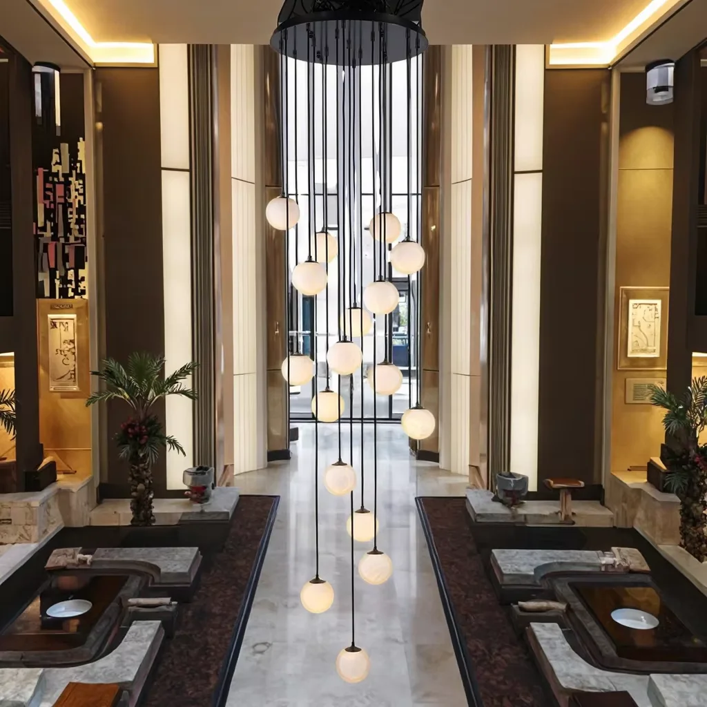 ECOJAS Spain's Modern Design Alabaster Ball Chandelier for Villa Hotel Decor with Stylish Lighting