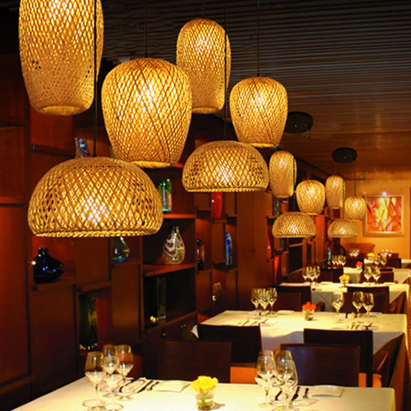 Chinese Style Art Homestay Zen Tea Room Lamp Bamboo Woven Three Head Dining Hall Pendant Lamp Restaurant Droplight