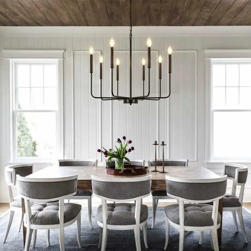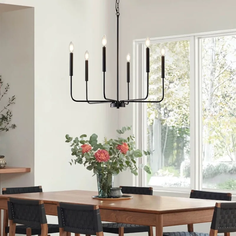 6-Light Modern Farmhouse Industrial Vintage Candle Chandeliers Adjustable Height Dining Room Light Fixture Middle Lamp Sizes