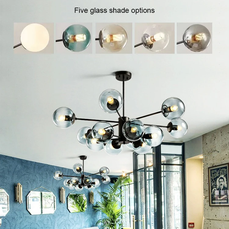 Nordic Modern Flush Mount Luxury Chandelier Ceiling Lamp for Living Room High Glass Shade Ball Led Ceiling Pendant Light Fixture