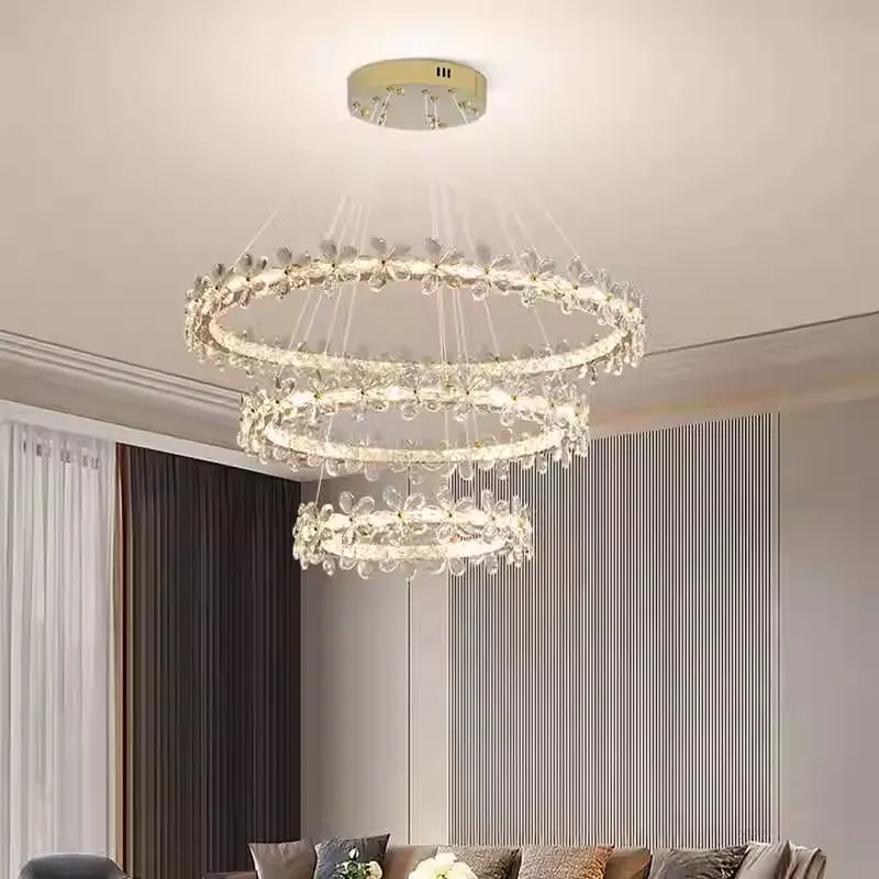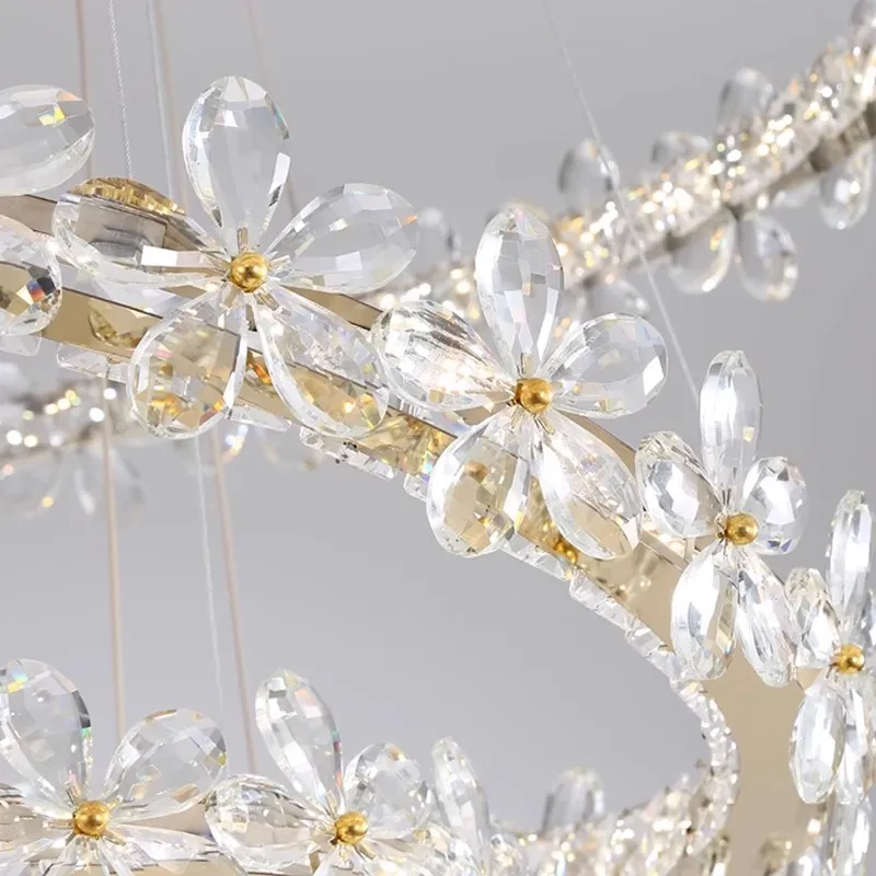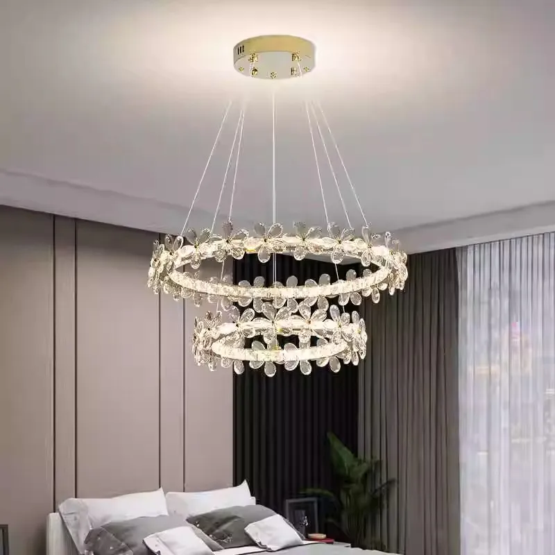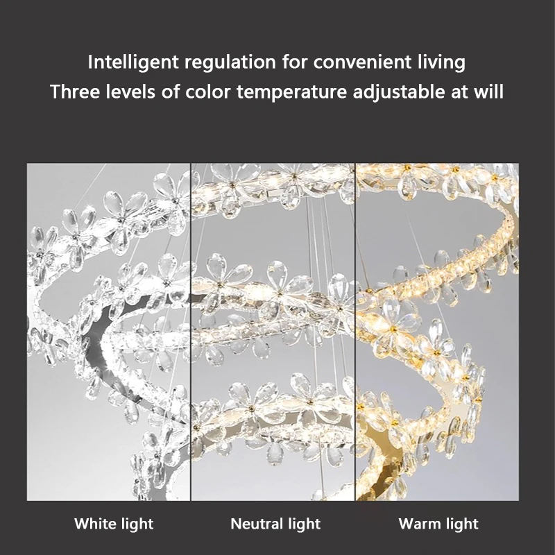 Modern Smart Ring Crystal Lamp Indoor Decorative Halo Chandelier with Remote Control Iron K9 Crystal Chandelier Furniture