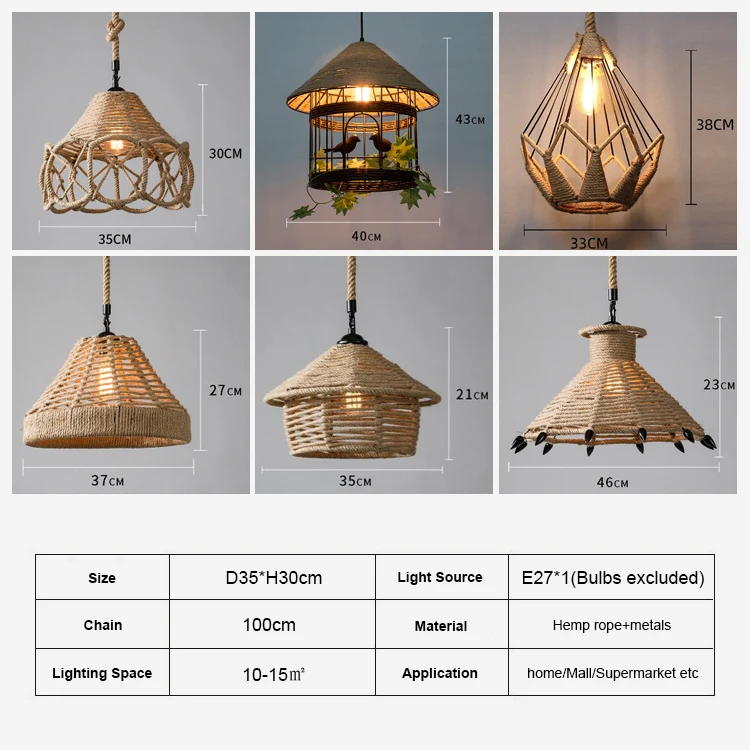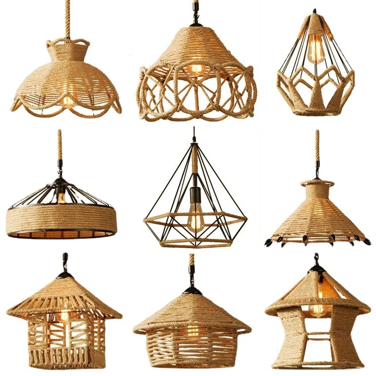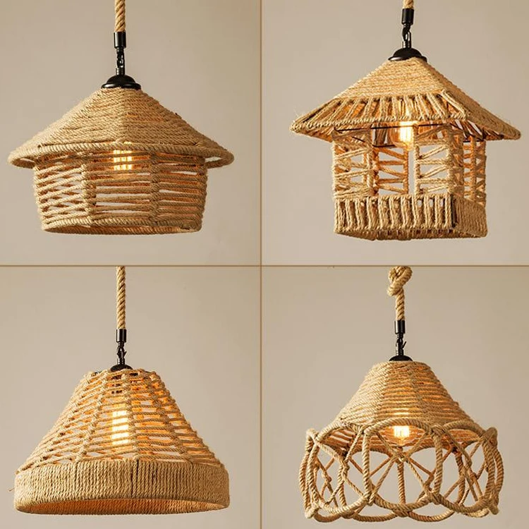 Farmhouse Lamp Decor Lighting for Home Vintage Asian Style Hanging Chandelier for Restaurant Creative Hemp Rope Pendant Light