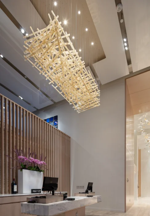 ECOJAS Shopping Mall Hotel Lobby Large Venue Project Lighting Transparent Glass Rod Luxury Style Chandelier