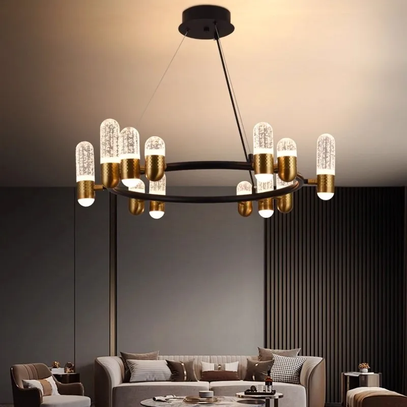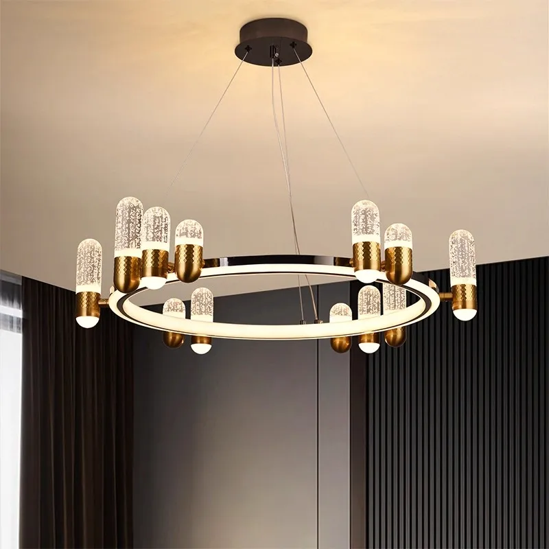 Modern LED Pendant Light Circle Iron Lighting Chandelier for Home Office Easy Hanging Indoor Decorative Fixture