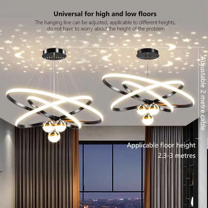 Post-modern Light Luxury Living Room Starry Sky Reflection Pendant Light Creative Round Led Chandeliers for Villa Restaurant