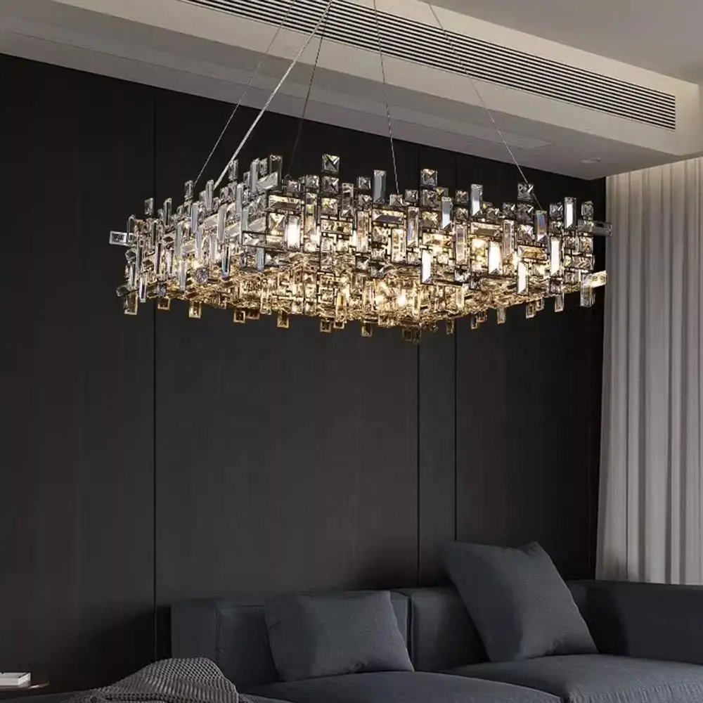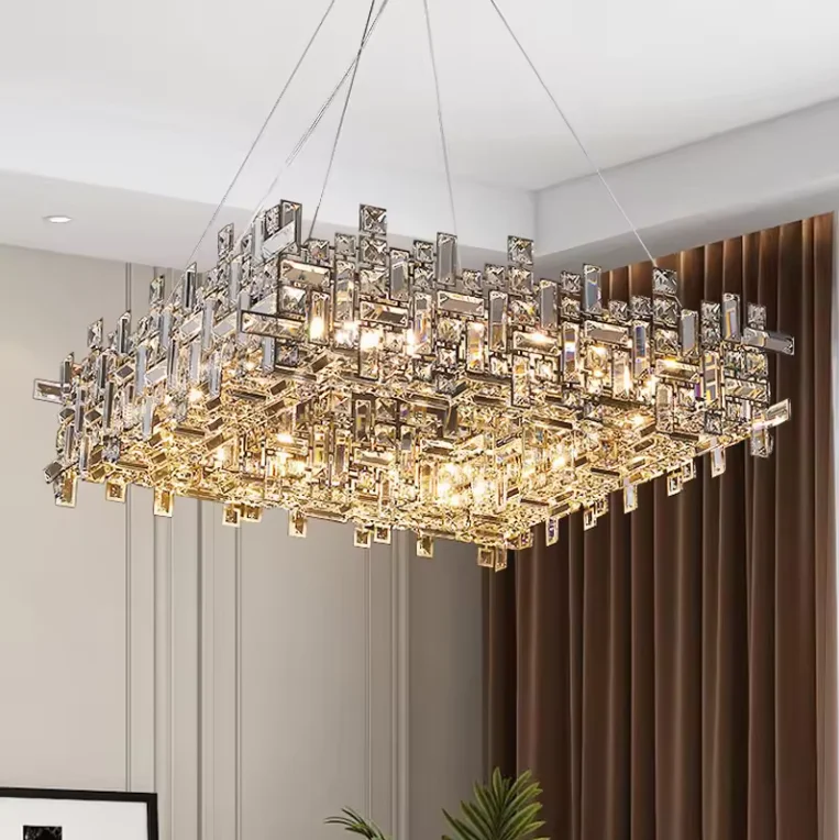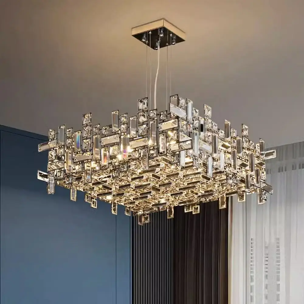 Zeal Lighting Rectangle Led Hanging Light Villa square Nordic Luxury Polygon Crystal Chandelier