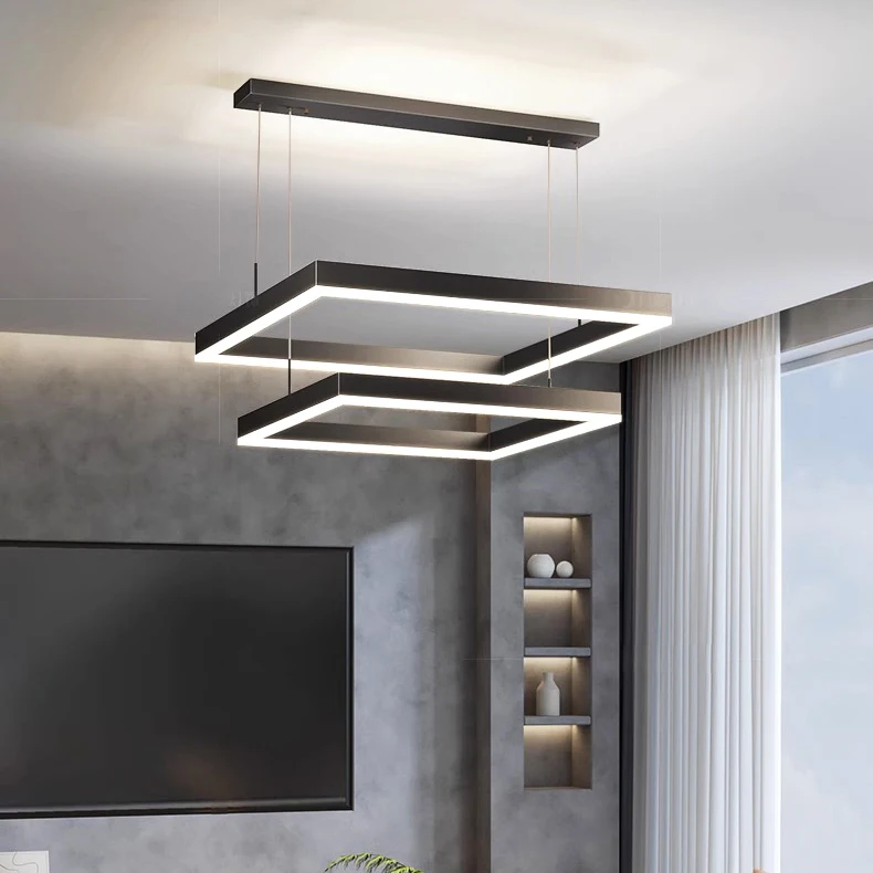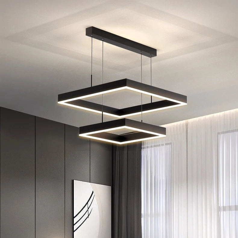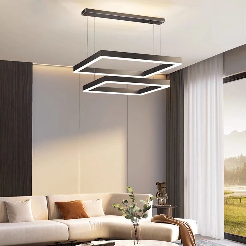 Modern LED Ring Dimmable Square Chandelier for Living Dining Room,Bedroom High Ceiling Hanging Living Room Pendant Light Fixture