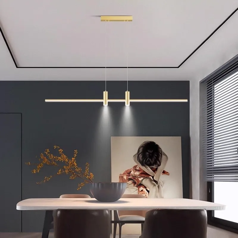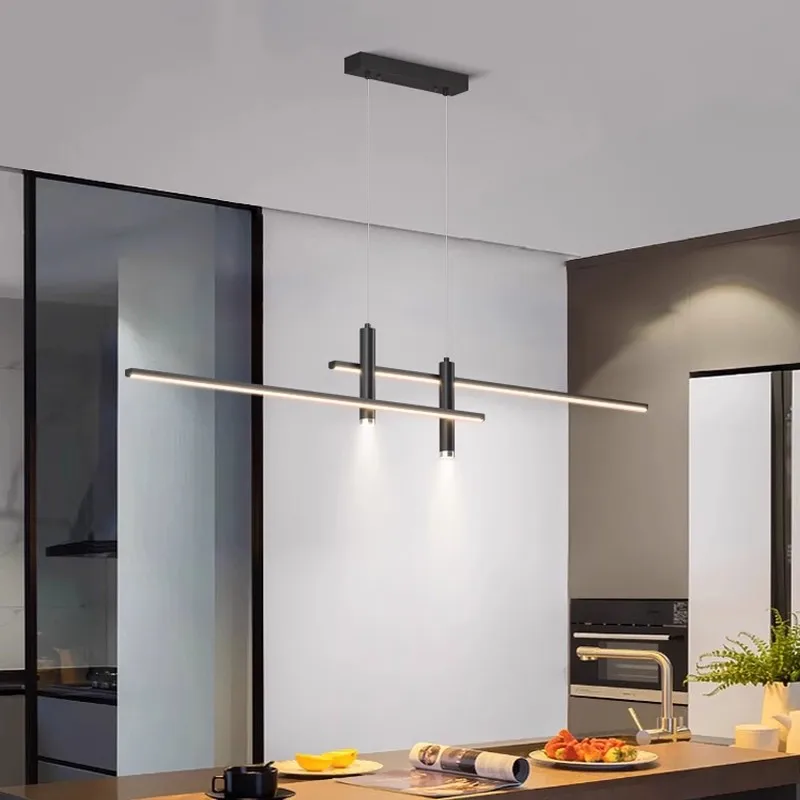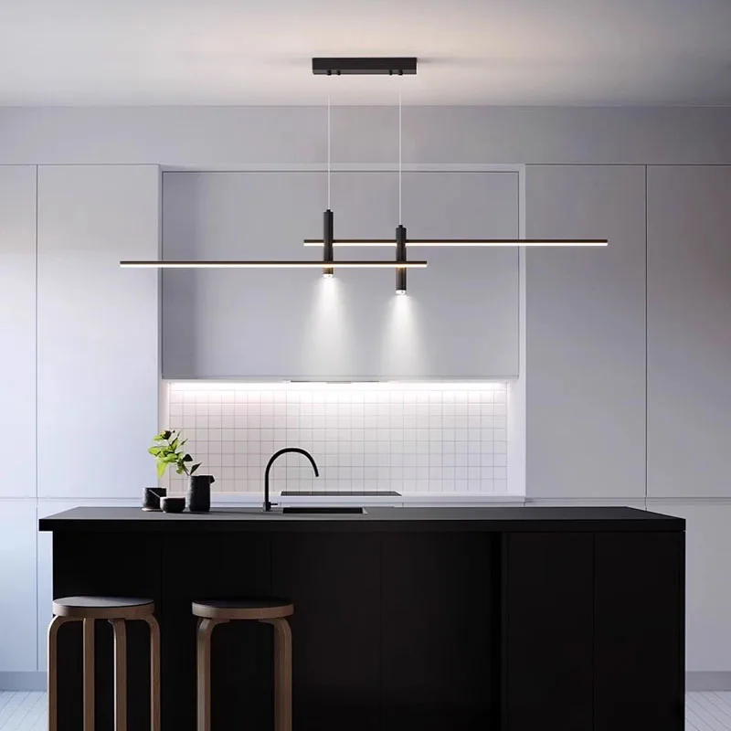 Modern Nordic LED Linear Pendant Light Black Gold Hanging Lamp for Kitchen Dining & Living Room Iron Material for Restaurant