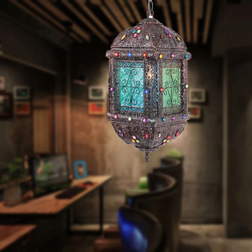 Turkish Mosaic Hanging Lantern Lamp Decorative Morocco Chandeliers Pendant Light NS-124014
