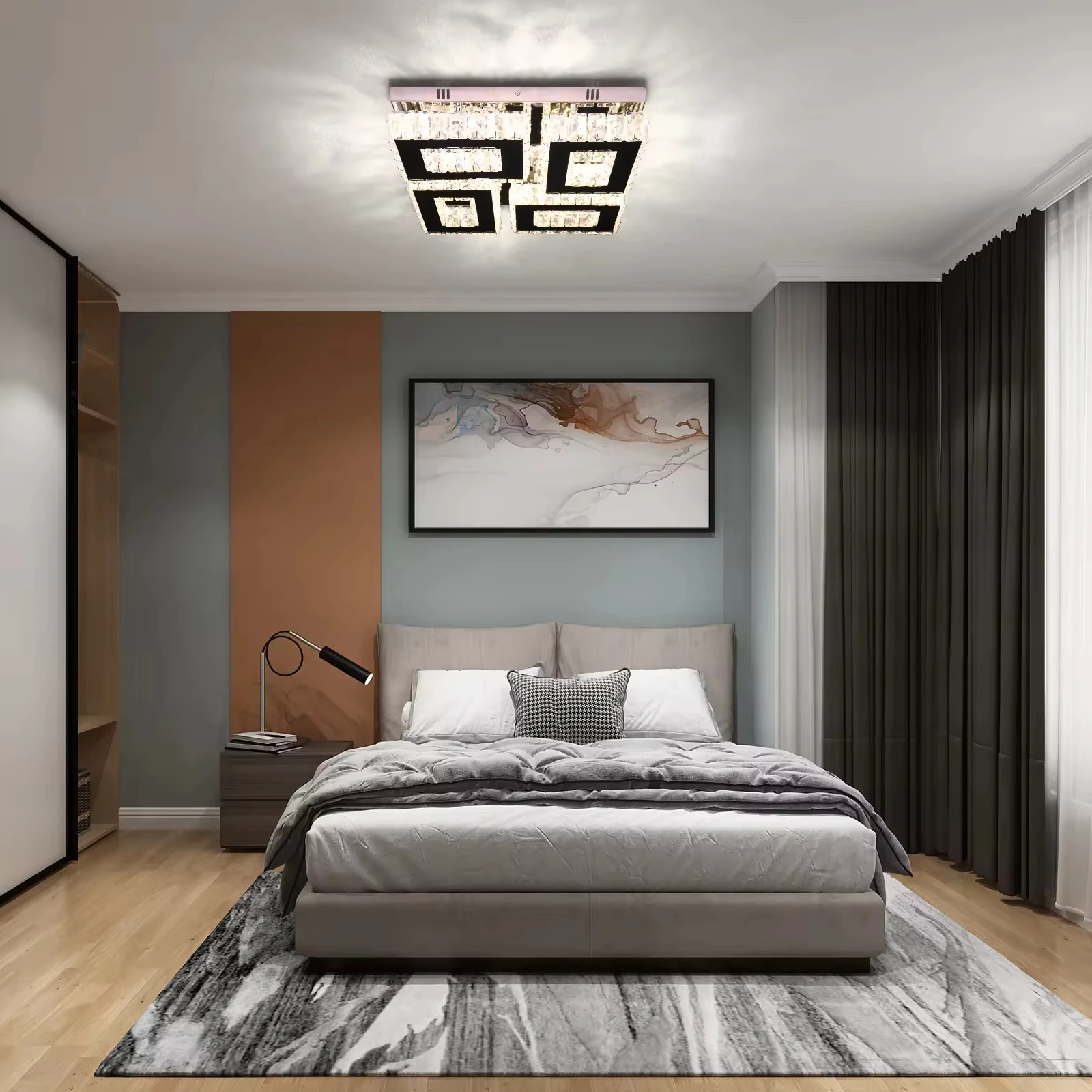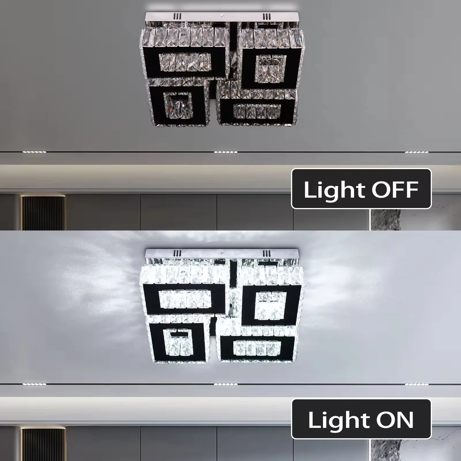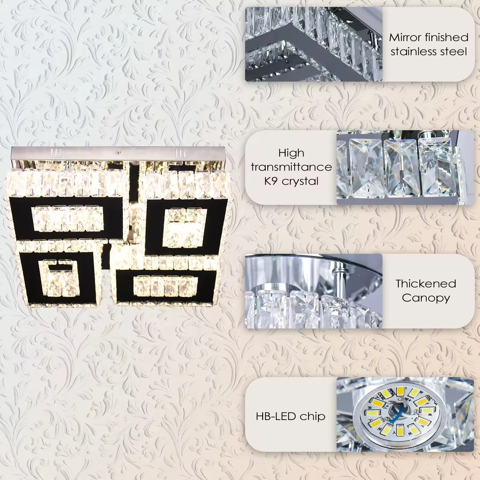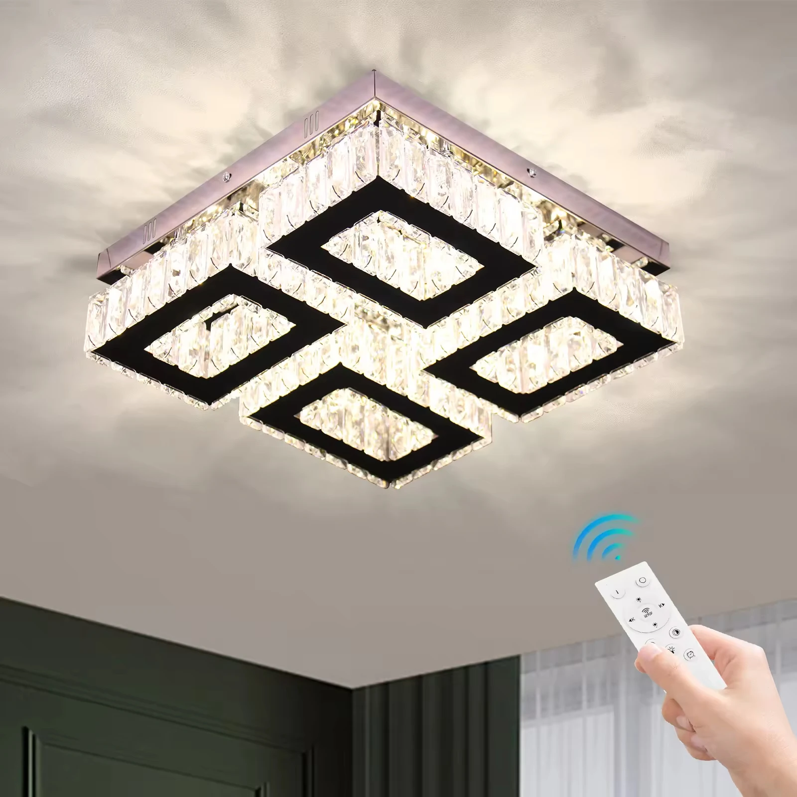 Zeal Lighting Living Room Luxury square Shape Modern Luxury K9 Crystal Led Ceiling Chandelier Light Fixture