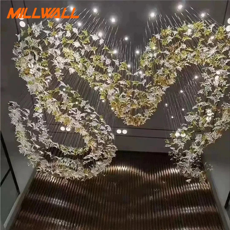 Engineering Customized Lamp Glass Luxury LED Decoration Show Room Big Hotel Lobby Crystal Custom Modern Glass Chandelier Light