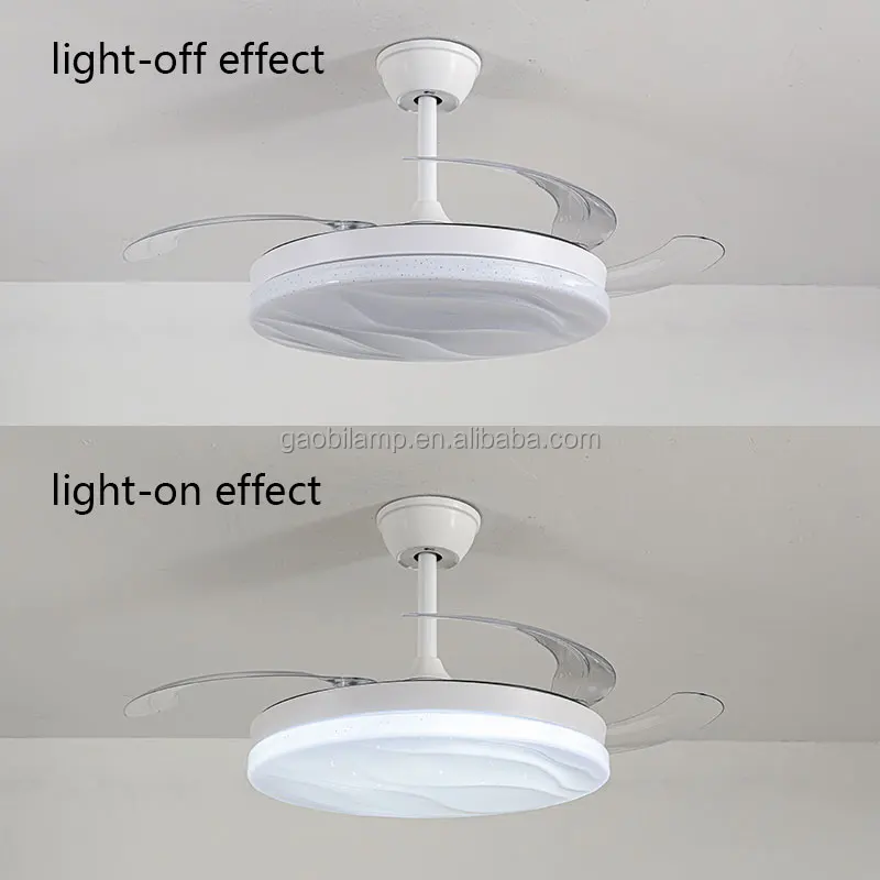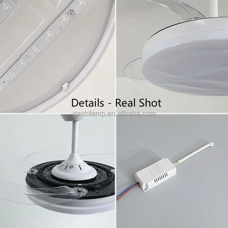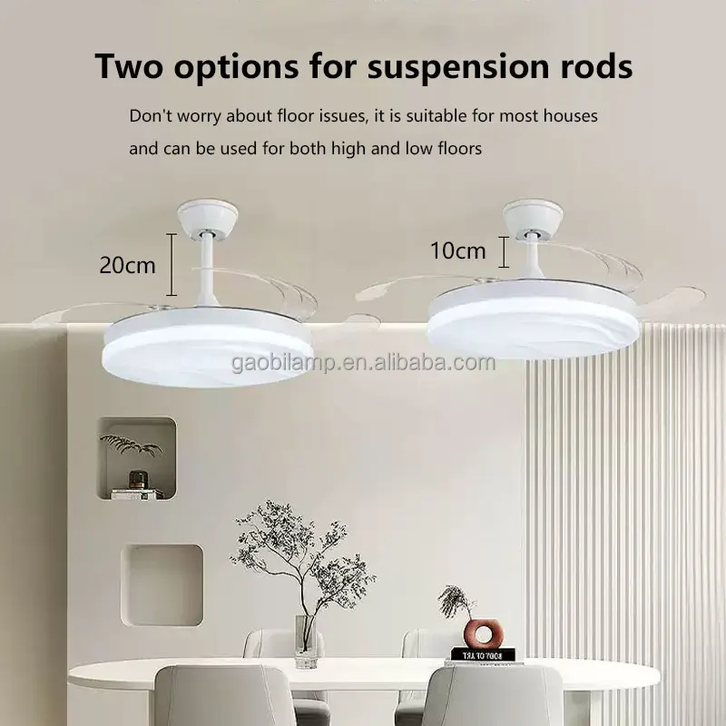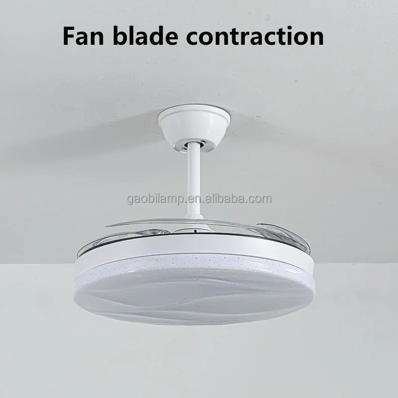 Modern LED Ceiling Fan Chandelier with Retractable Invisible Blades 3-Color Remote Control Indoor Lighting Stylish Lamp Design
