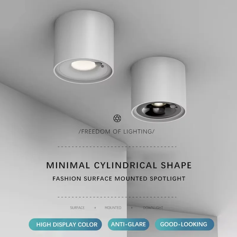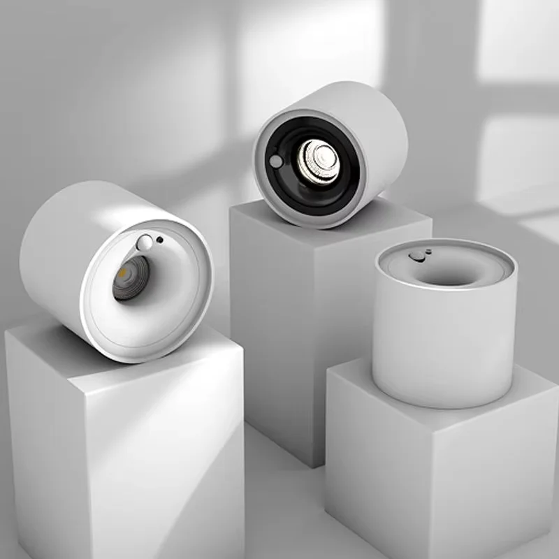 Modern Black and White Cylinder LED Downlight Surface Mounted Cob Aluminum Lamp for Home Office