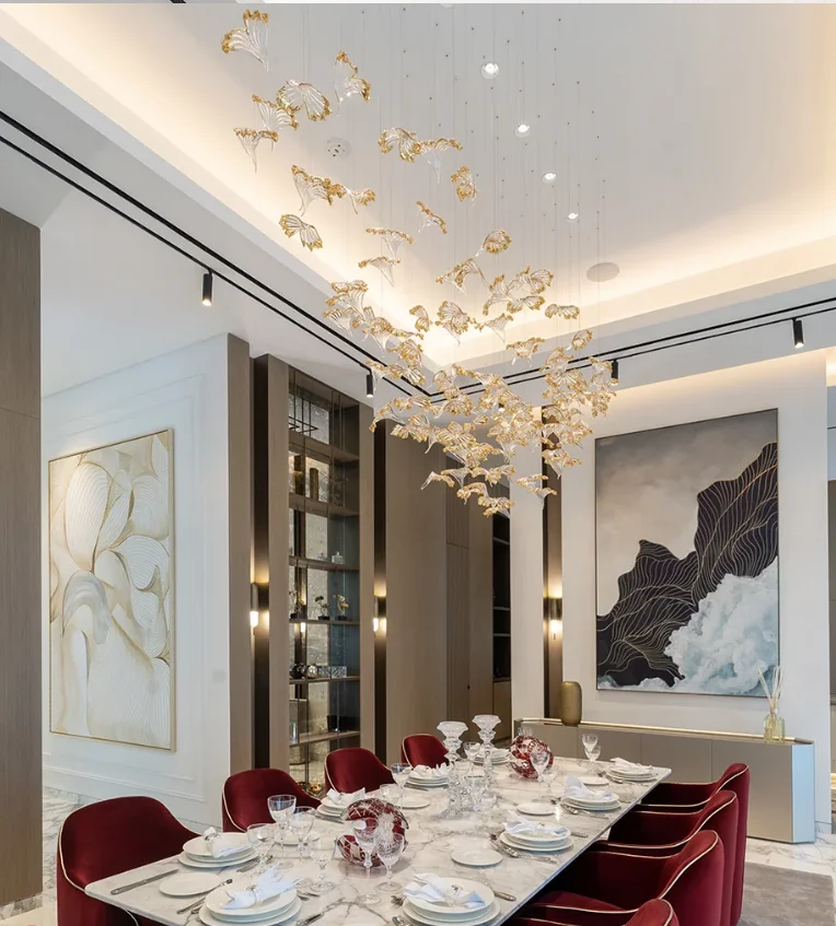ECOJAS Villa Project Professional Quality Hotel Lobby Banquet Hall Decoration Chandelier Custom Large Glass Led Pendant Light