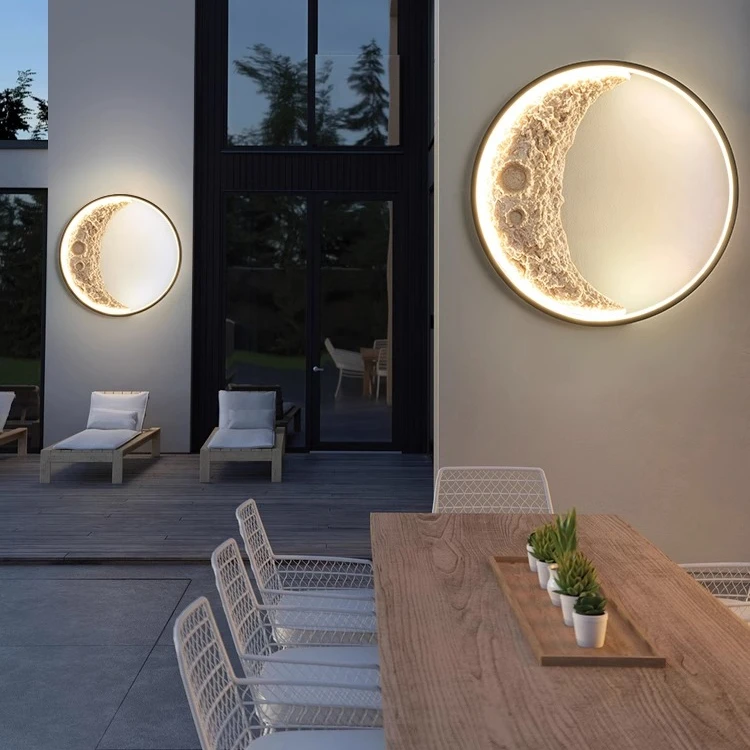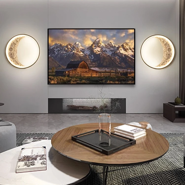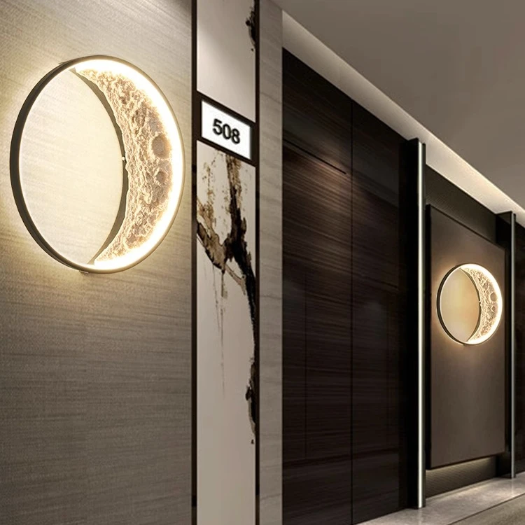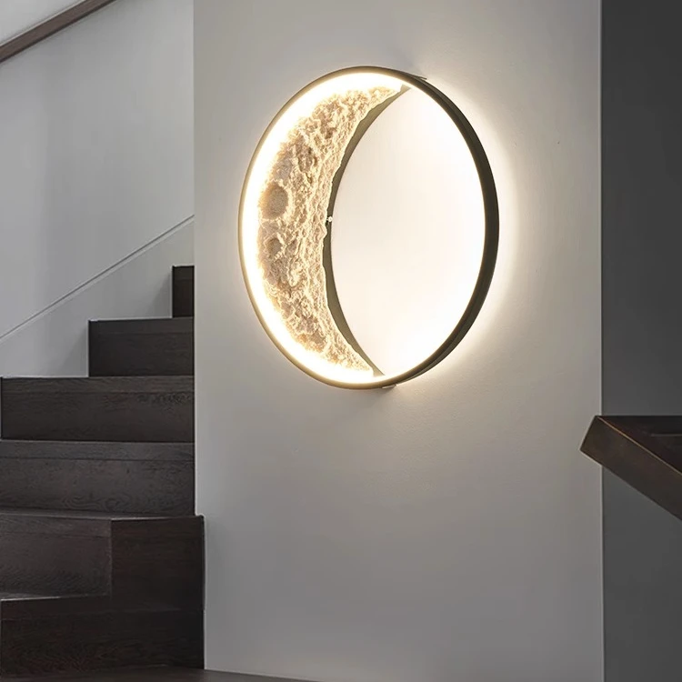 2023 New Moon Art Modern Bedroom Wall Lamp LED Dimmable Bedside Lamp with Plaster Mural Design
