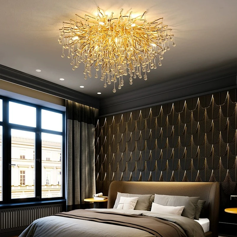 Hotel Luxury Chandelier Hanging Living Room Fancy Crystal Lamp Modern Led Crystal Ceiling Panel Light Chandelier Pendant Light