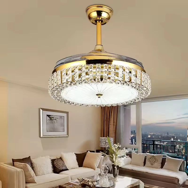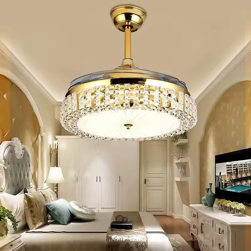 OEM 42inch Zeal Lighting Luxury Invisible Crystal Light Ceiling Fan Chandelier Led with Lights and Remote