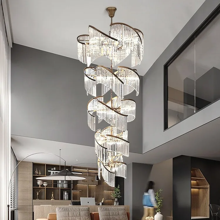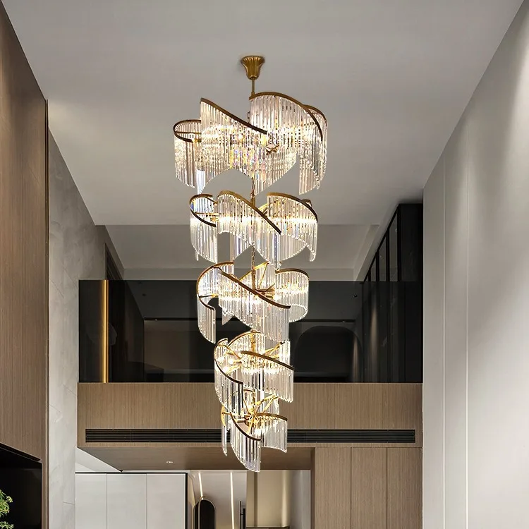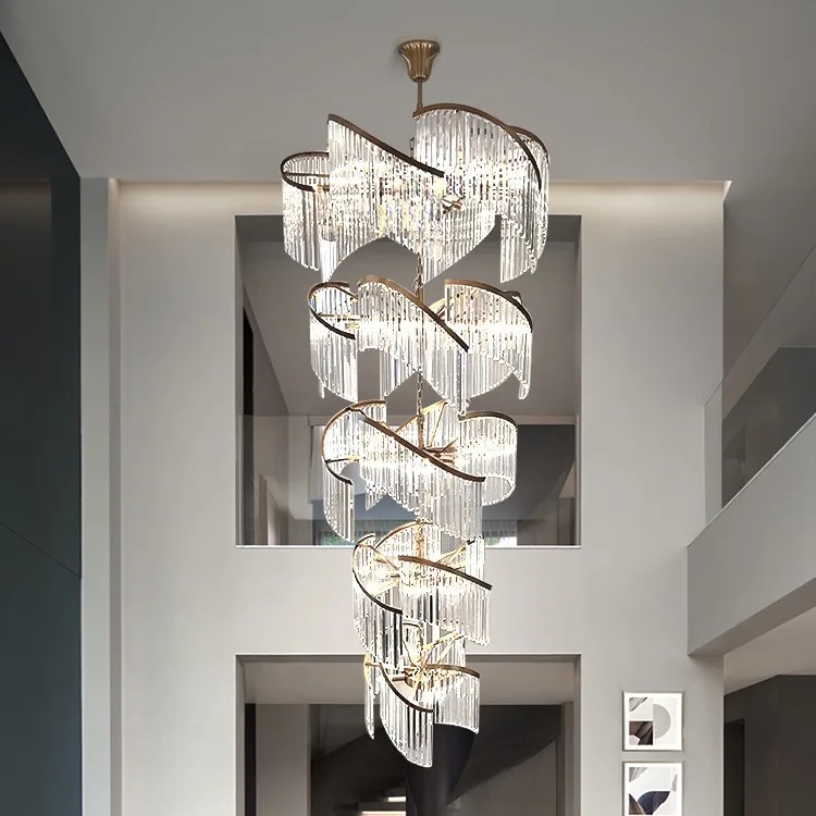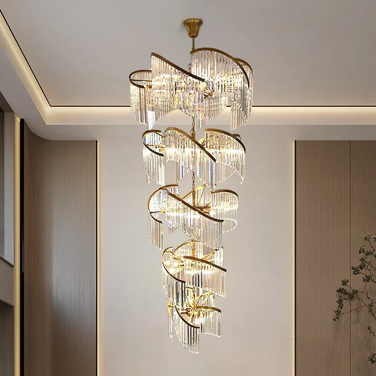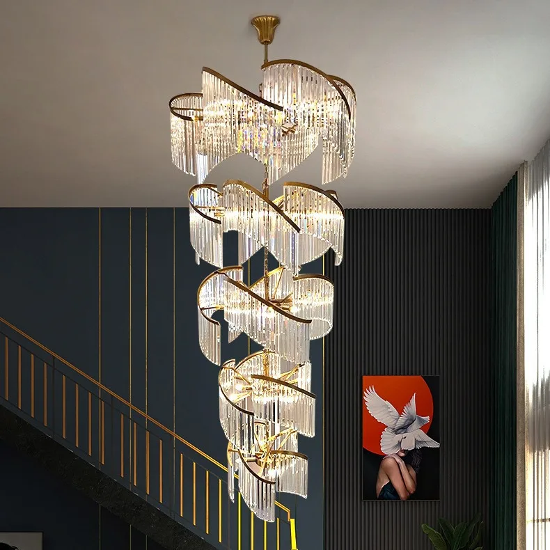 Zeal Lighting Long Stairwell Hanging Pendant Light Staircase Villa Duplex Stair High Ceiling Crystal Chandelier