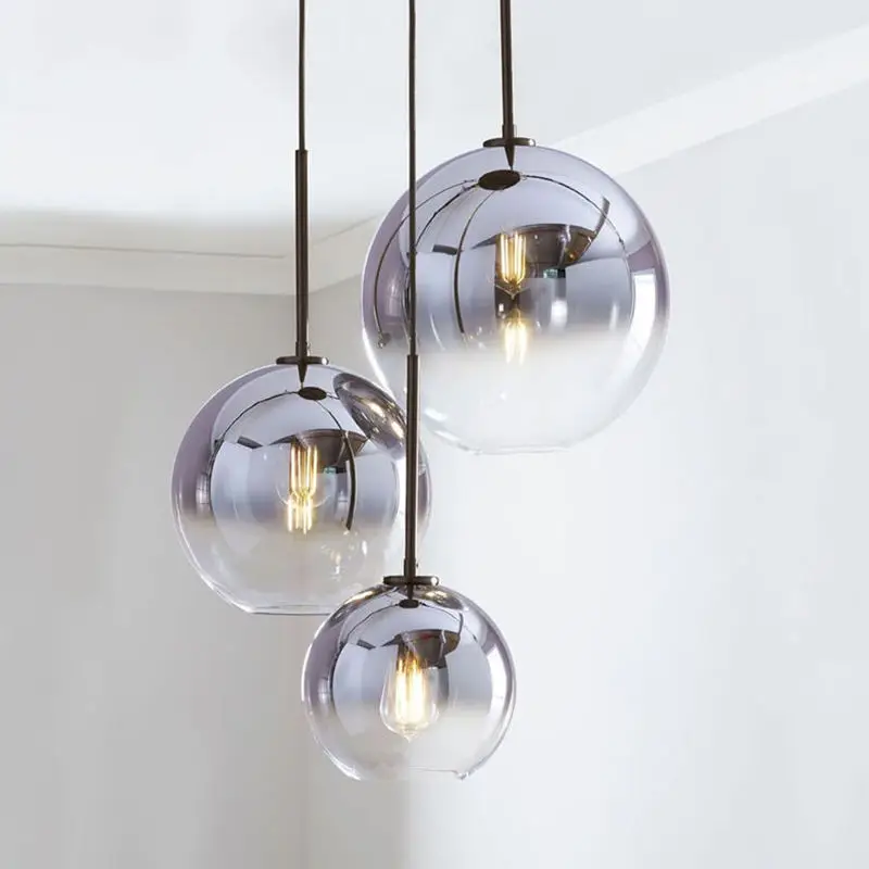 Zeal Lighting Nordic Art Design Gold Hanging Globe Light Bedroom Round Gradual Glass Ball Pendant Light