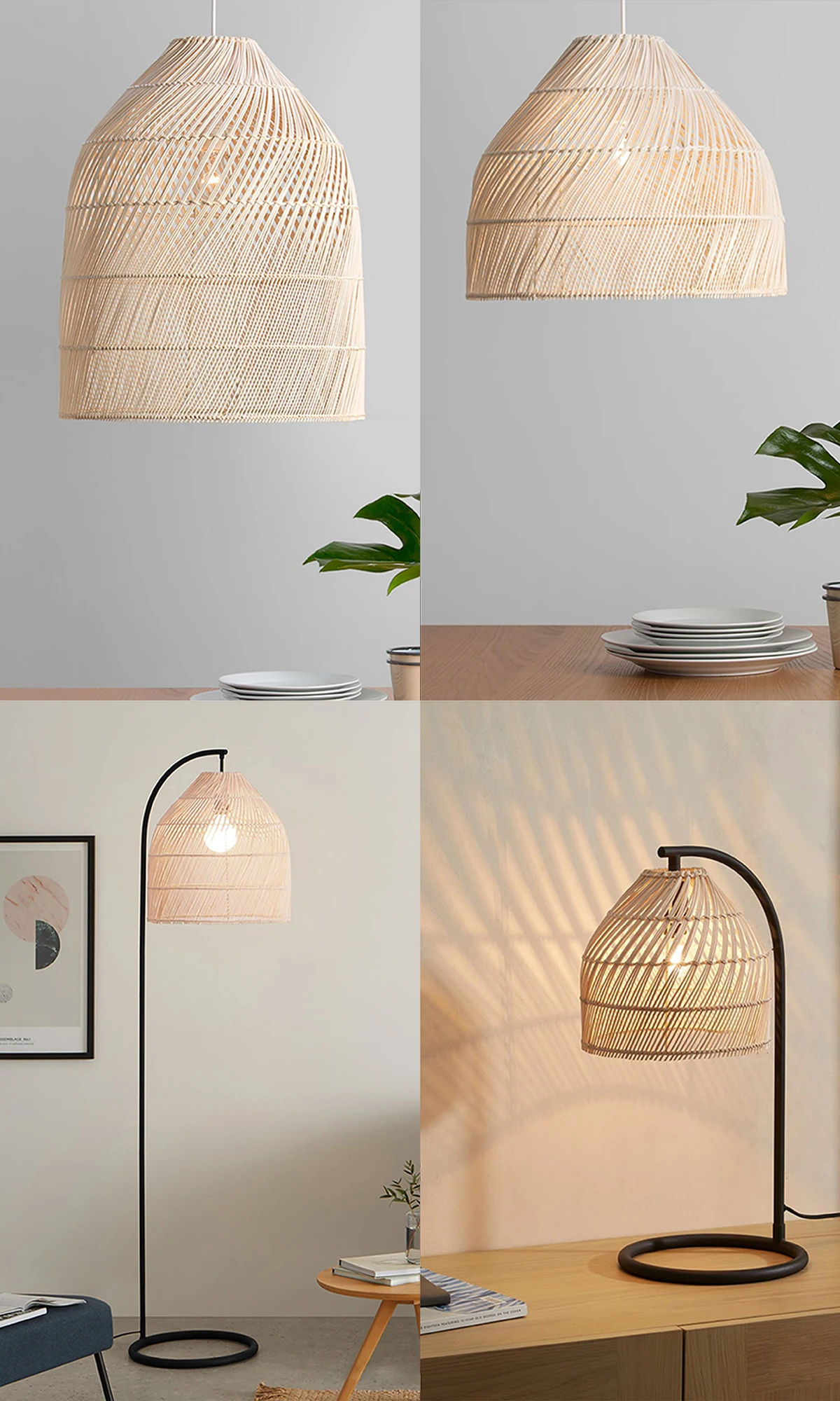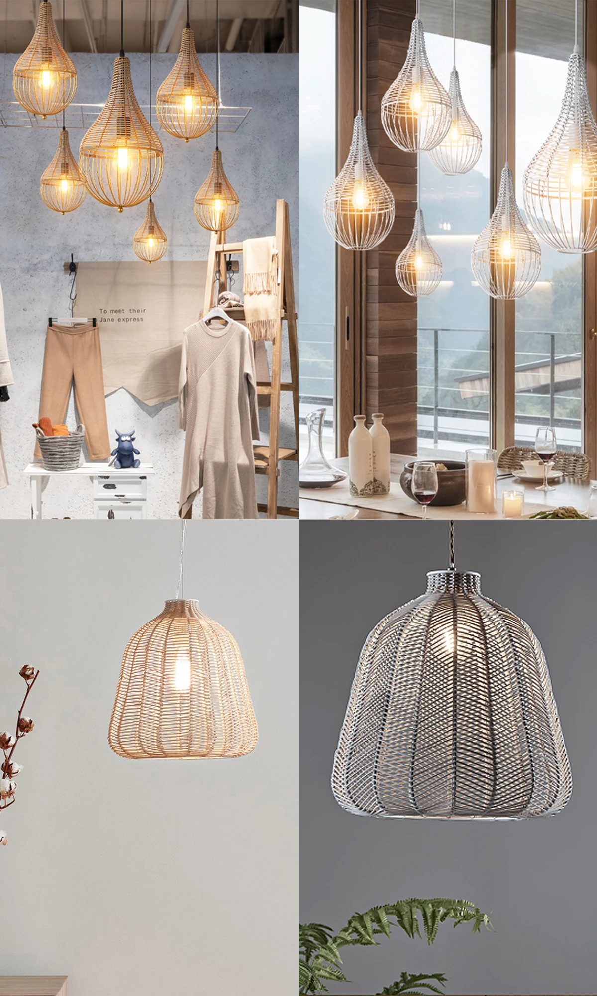 Wabi-Sabi Handcrafted Tassel Macrame Woven Pendant Light Twine Braid Rattan Led Rattan Chandelier