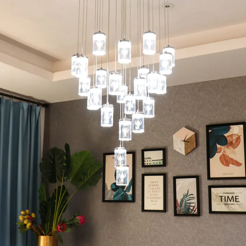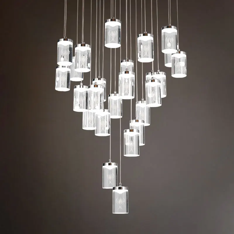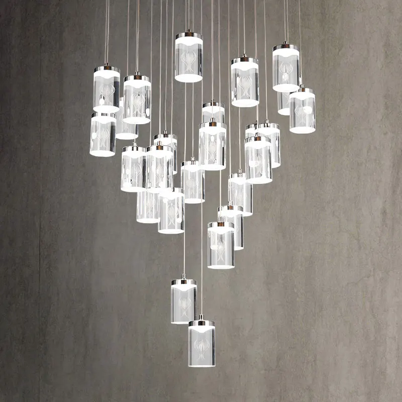 Zeal Lighting Long Stairwell Hanging Pendant Light Staircase Villa Duplex Stair High Ceiling Crystal Chandelier